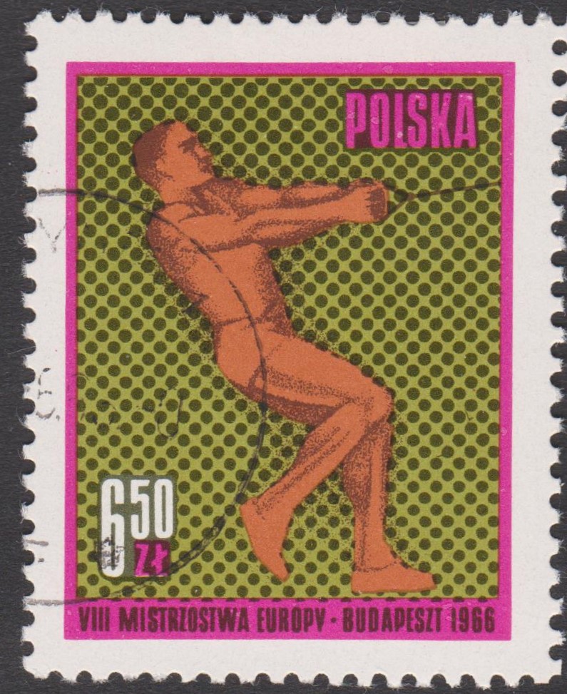 Zu den Leichtathletik-Europameisterschaften 1966 in Budapest erschien Polen MiNr. 1686 zum Thema Hammerwerfen: