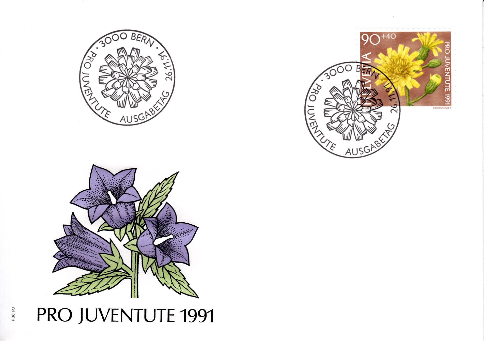 Auf diesem FDC finden wir den kompletten Satz Pro Juventute 1991.
