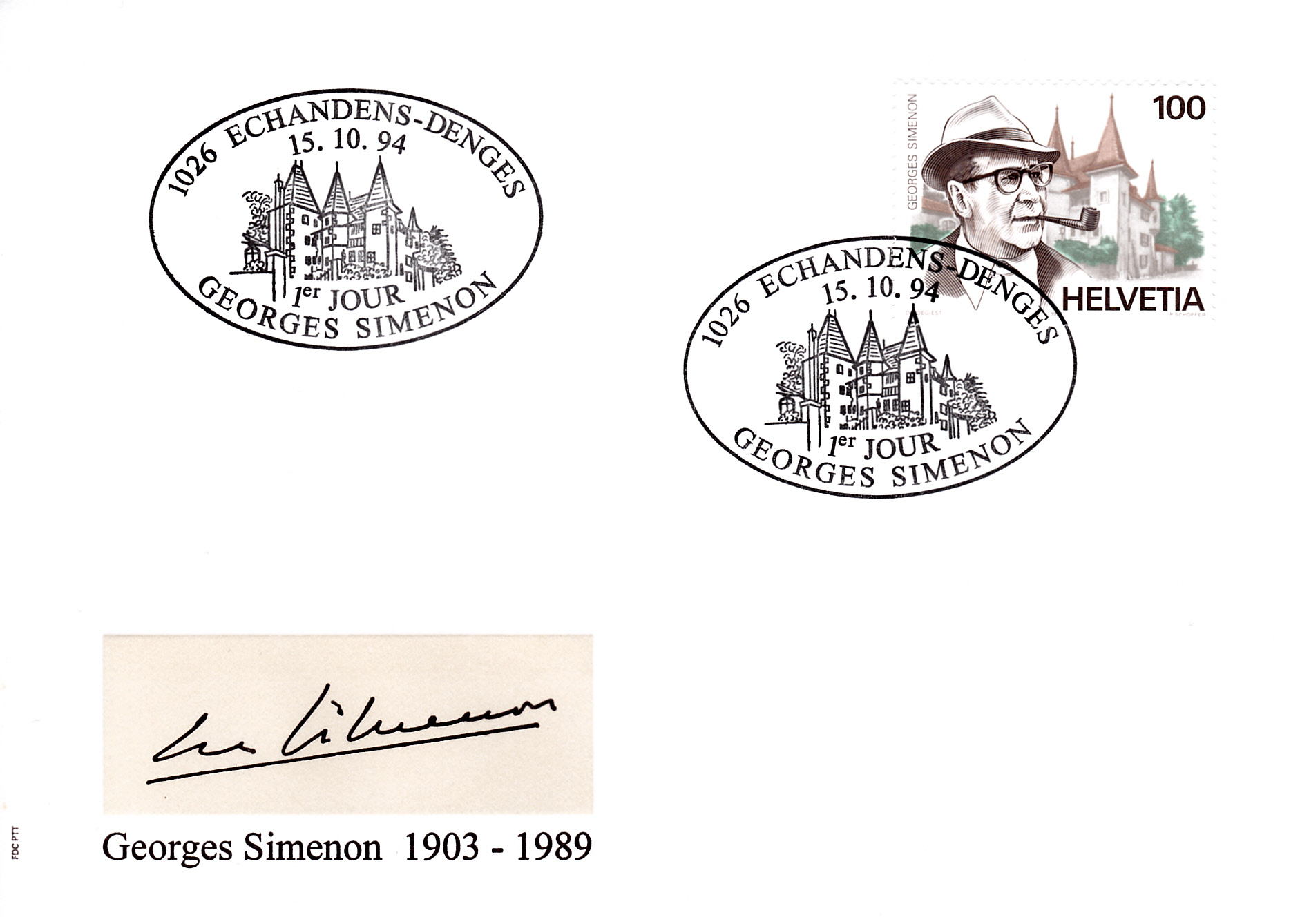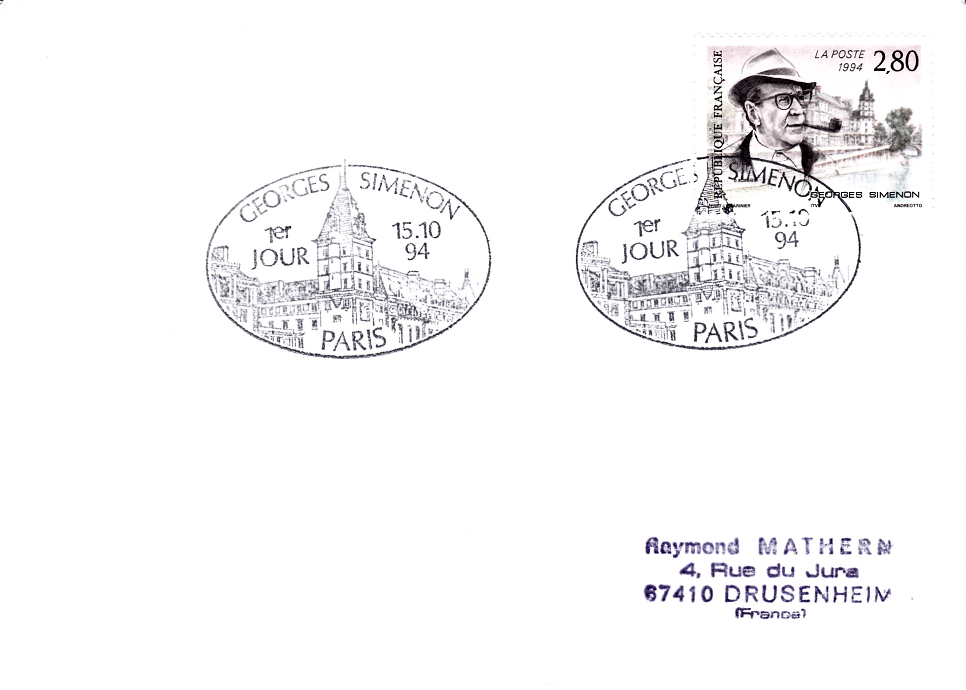 Zum 5. Todestag von Georges Simenon ist in Frankreich eine Marke (MiNr 3055) mit seinem Porträt und dem Quai des Orfèvres in Paris erschienen.