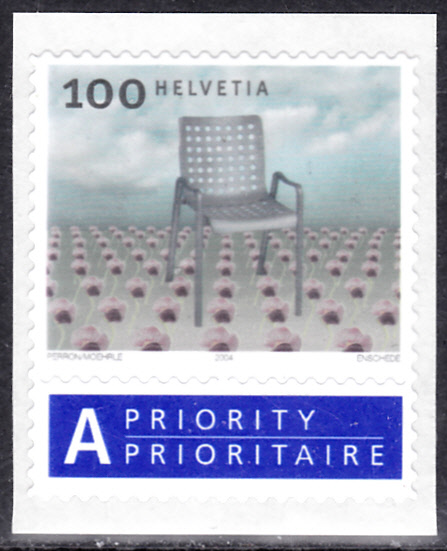 Diese Marke aus der Schweiz (MiNr 1873) zeigt den Landi-Stuhl nach dem Entwurf von Hans Coray.