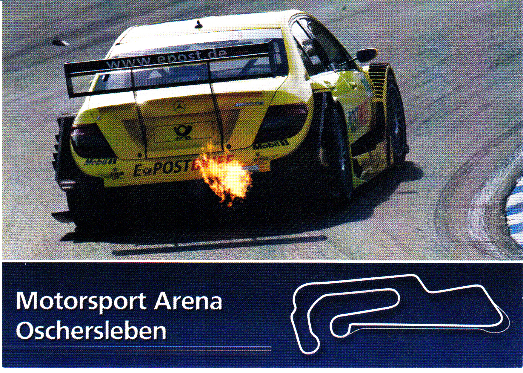 Hier zeige ich eine Sonderpostkarte des Erlebnis:Briefmarken Teams mit dem beim Rennen geführten Sonderstempel (Abb. DTM Rennauto).