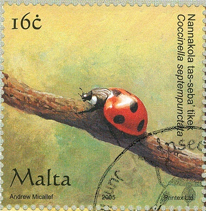 Auf dieser maltesischen Marke aus dem Jahr 2005 wurde ein 7-Punkt-Marienkäfer abgebildet.