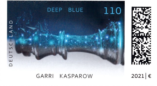 Bei der Deutschen Post ist 2021 eine Marke (MiNr 3595) zu "Schachcomputer Deep Blue schlägt Weltmeister Garri Kasparow". Sie zeigt einen geschlagenen König in physischer und digitaler Gestalt.