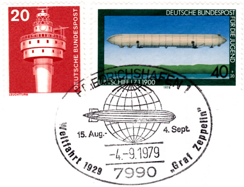 Im Hintergrund wird das Luftschiff LZ 127 Graf Zeppelin gezeigt, hier mit ESST auf ETB 8/1992: