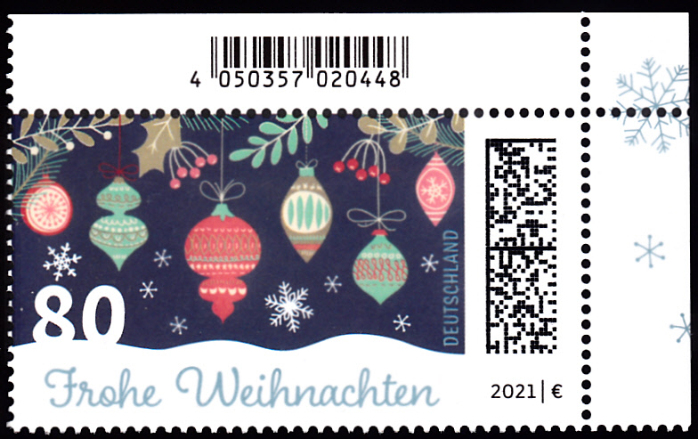 Bei der Deutschen Post ist diese Marke (MiNr 3640) mit der Abbildung "Böhmische Christbaumkugeln an Zweigen und Schneeflocken" erschienen.
