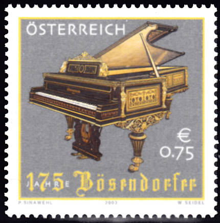 In Österreich erschien eine Marke (MiNr 2451) zu "175 Jahre Klavierfabrik Bösendorfer" mit der Abbildung eines Flügel.