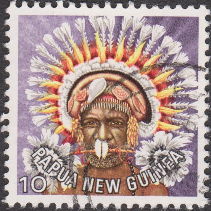 Papua-Neuguinea MiNr. 343 zeigt einen Kopfschmuck aus Koiari: