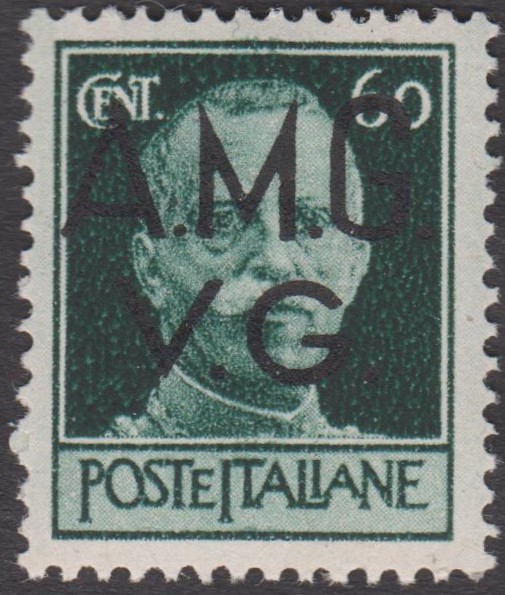 Italienische Postwertzeichen mit Aufdruck A.M.G V.G. (= Allied Military Government Venezia Guilia)