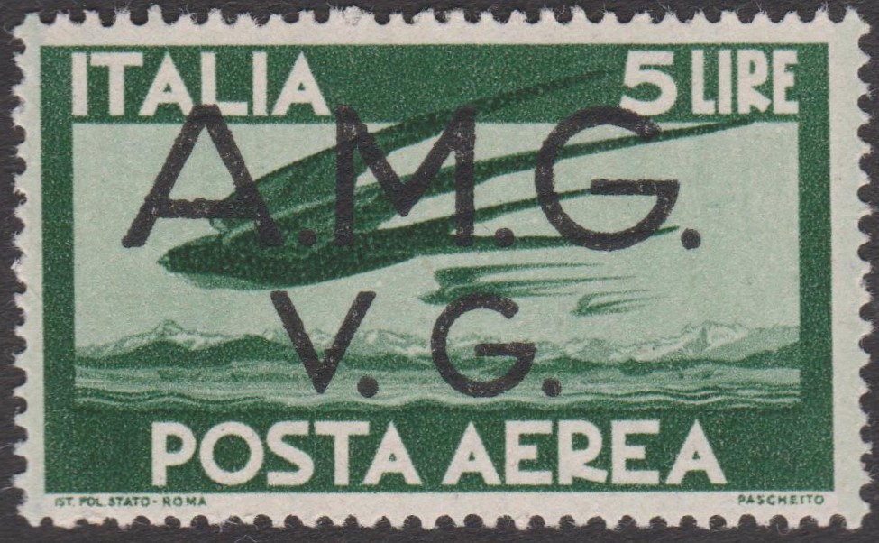 Italienische Postwertzeichen mit Aufdruck A.M.G V.G. (= Allied Military Government Venezia Guilia)