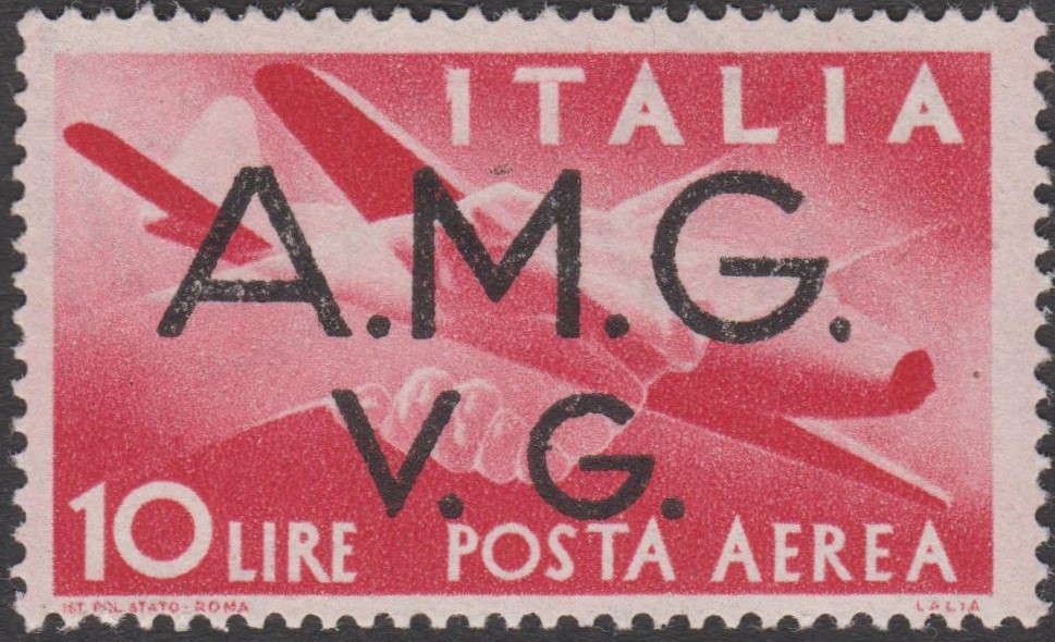 Italienische Postwertzeichen mit Aufdruck A.M.G V.G. (= Allied Military Government Venezia Guilia)