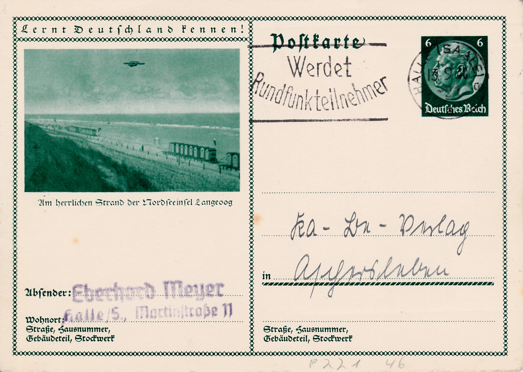 Auf dieser Karte (MiNr P 221/46) wird der Strand der Insel Langeoog abgebildet.