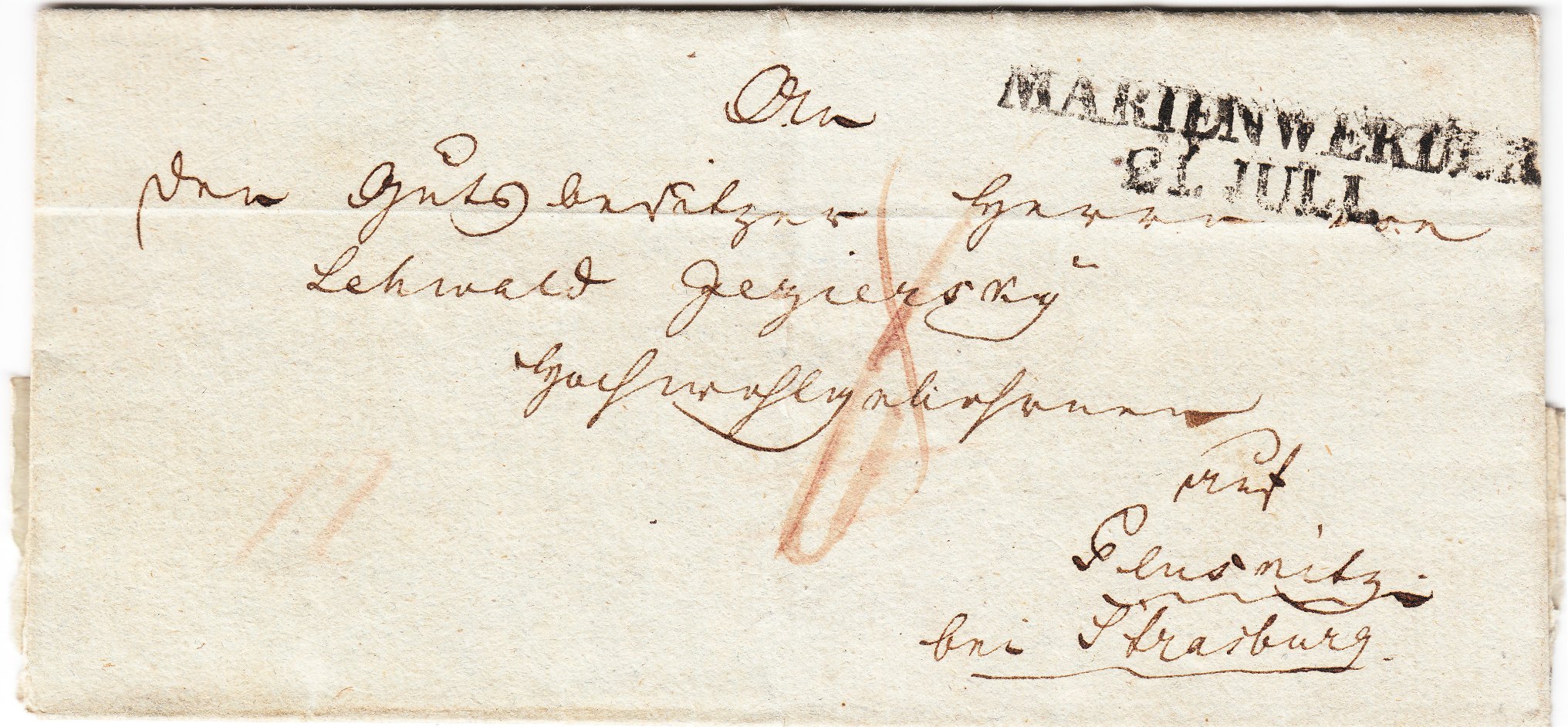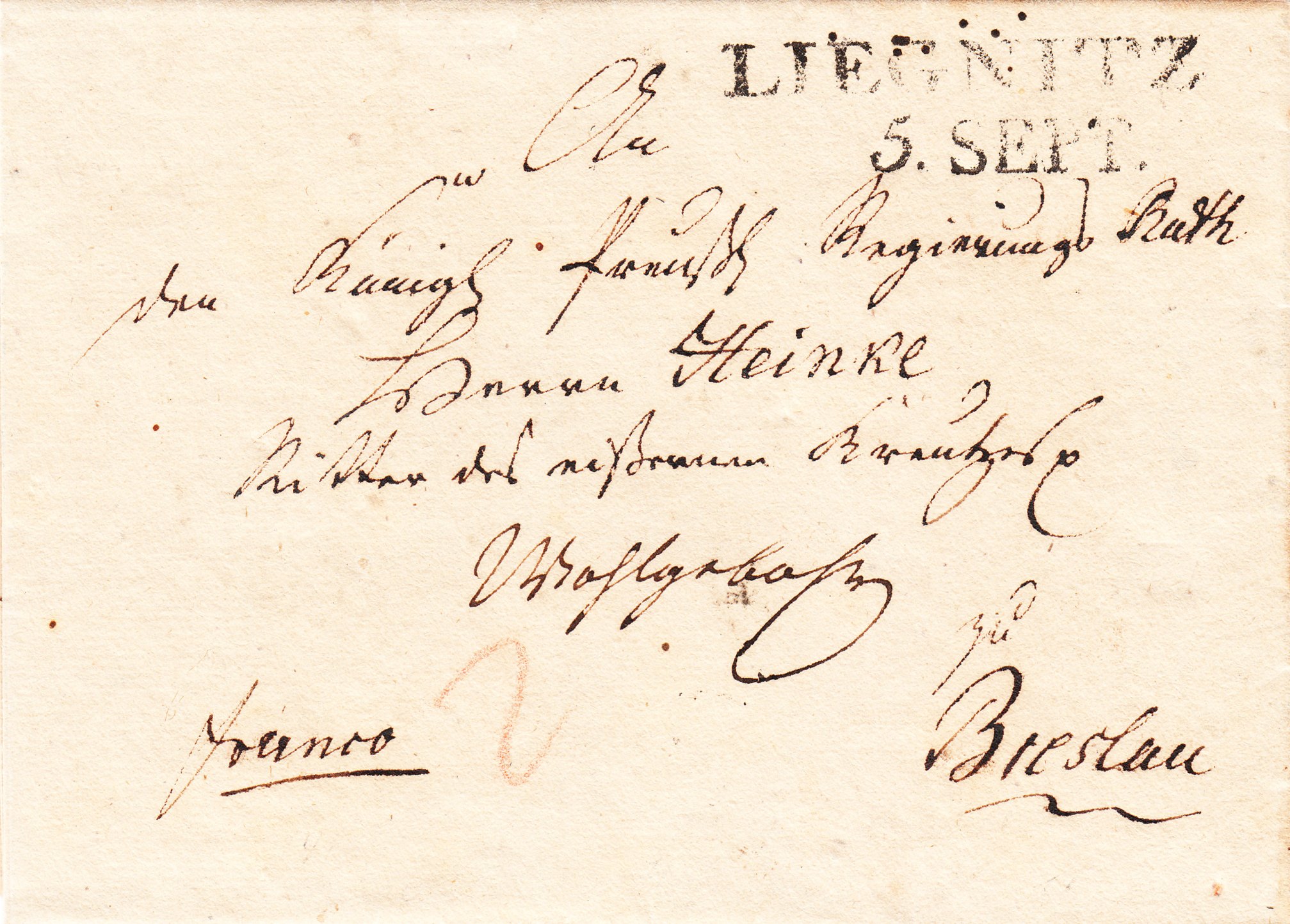 Elberfeld und Olpe sind Luftlinie 55 km voneinander entfernt, über die Straße sind es 72 km. Somit fiel der Beleg in die erste Entfernungsstufe bis 10 preußische Meilen = 75,325 km und kostete ein Porto von "1" Silbergroschen.