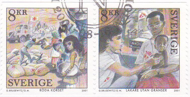 In einer Ausgabe "100 Jahre Friedensnobelpreis" erschien in Schweden diese Marke (MiNr 2243) mit einer Abbildung zur Arbeit von "Ärzte ohne Grenzen".