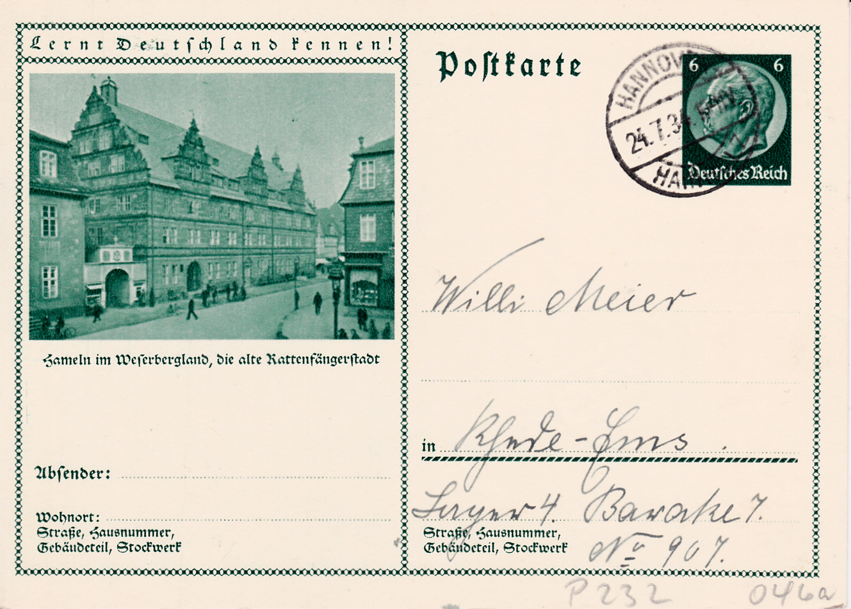Es folgt eine Karte (MiNr P 232/46) mit einer Ansicht aus der Rattenfängerstadt Hameln.