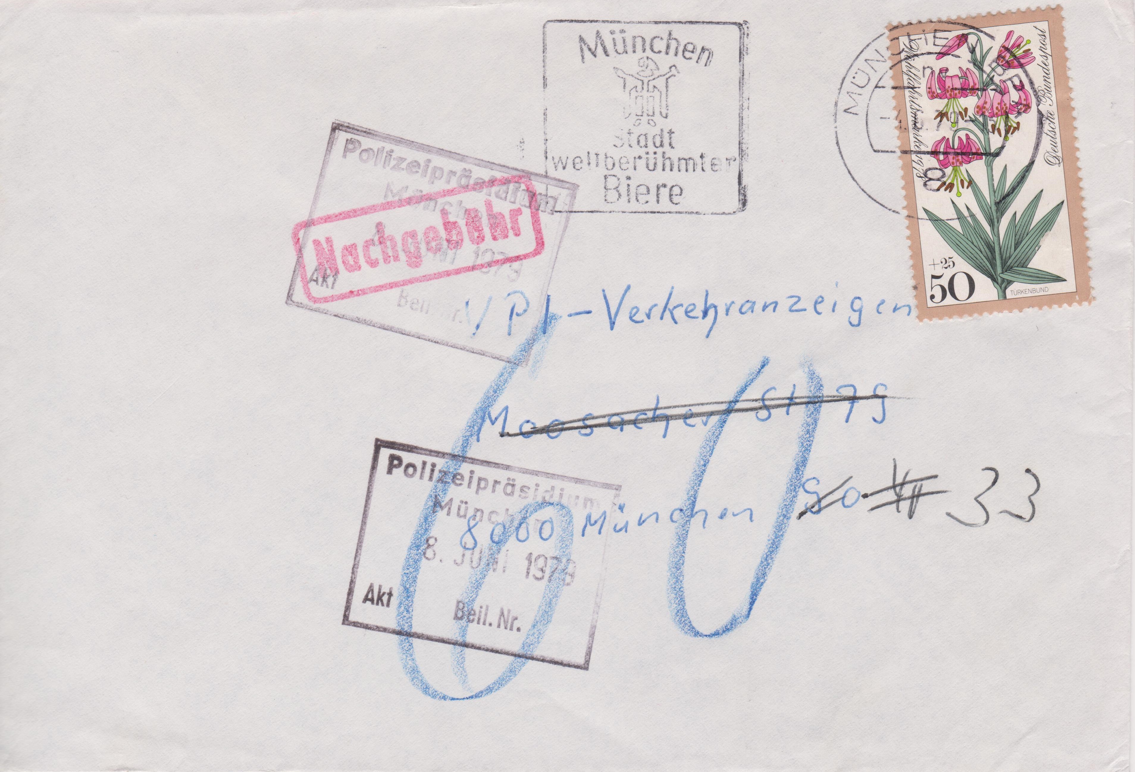 Das Porto für einen Brief bis 20 g im Fernverkehr kostete bis 31.12.1978 50 Pf und ab 01.01.1979 dann 60 Pf.