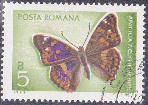 Aus Rumänien kommt diese Marke (MiNr 2771) mit einem kleinen Schillerfalter (Apatura ilia).