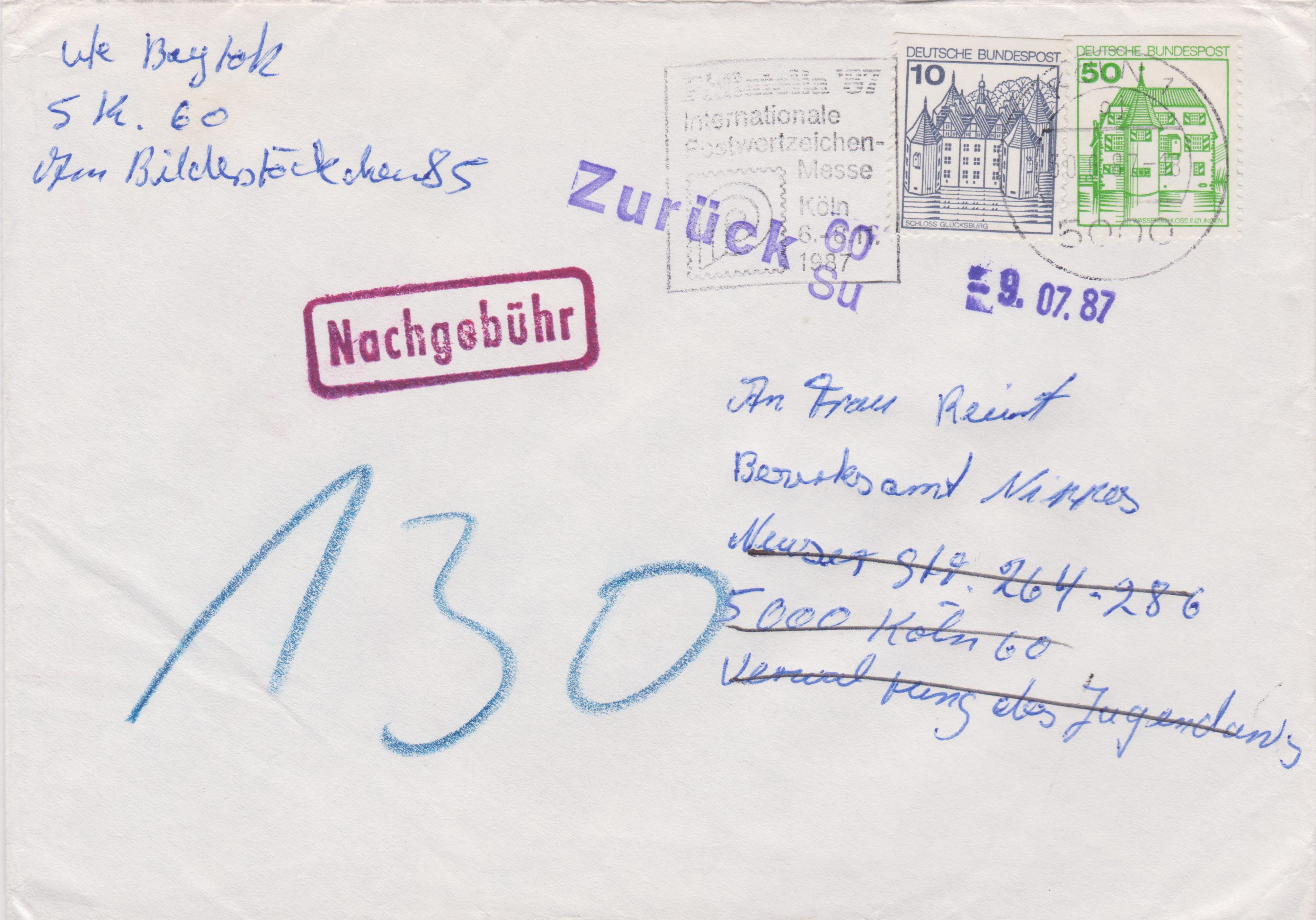 Dieser Brief wurde am 30.06.1987 mit 60 Pfennig frankiert:
