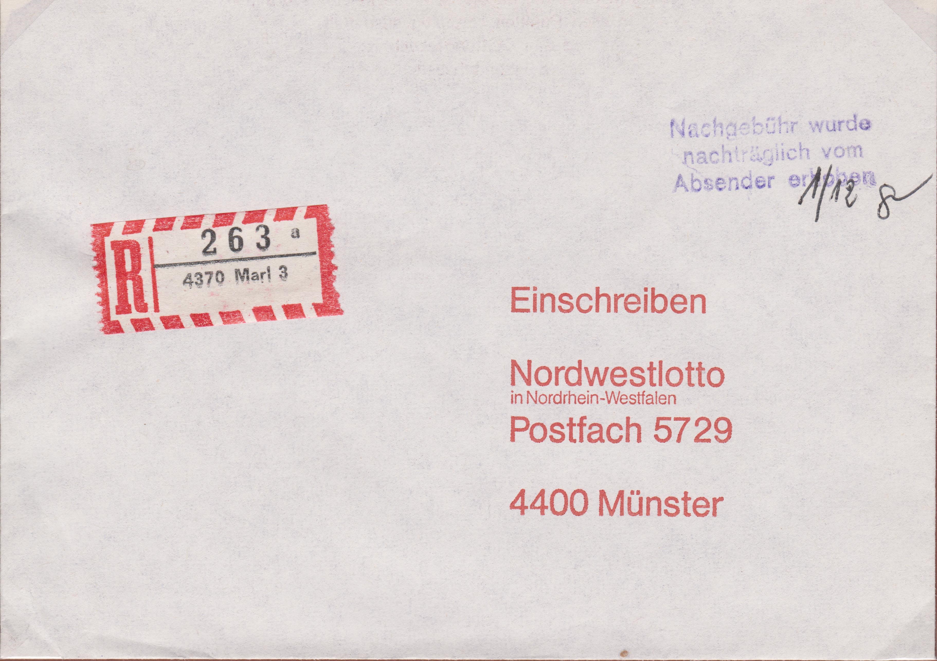 Diese Briefe an den Empfänger "Nordwestlotto" wurden unfrankiert aufgegeben: