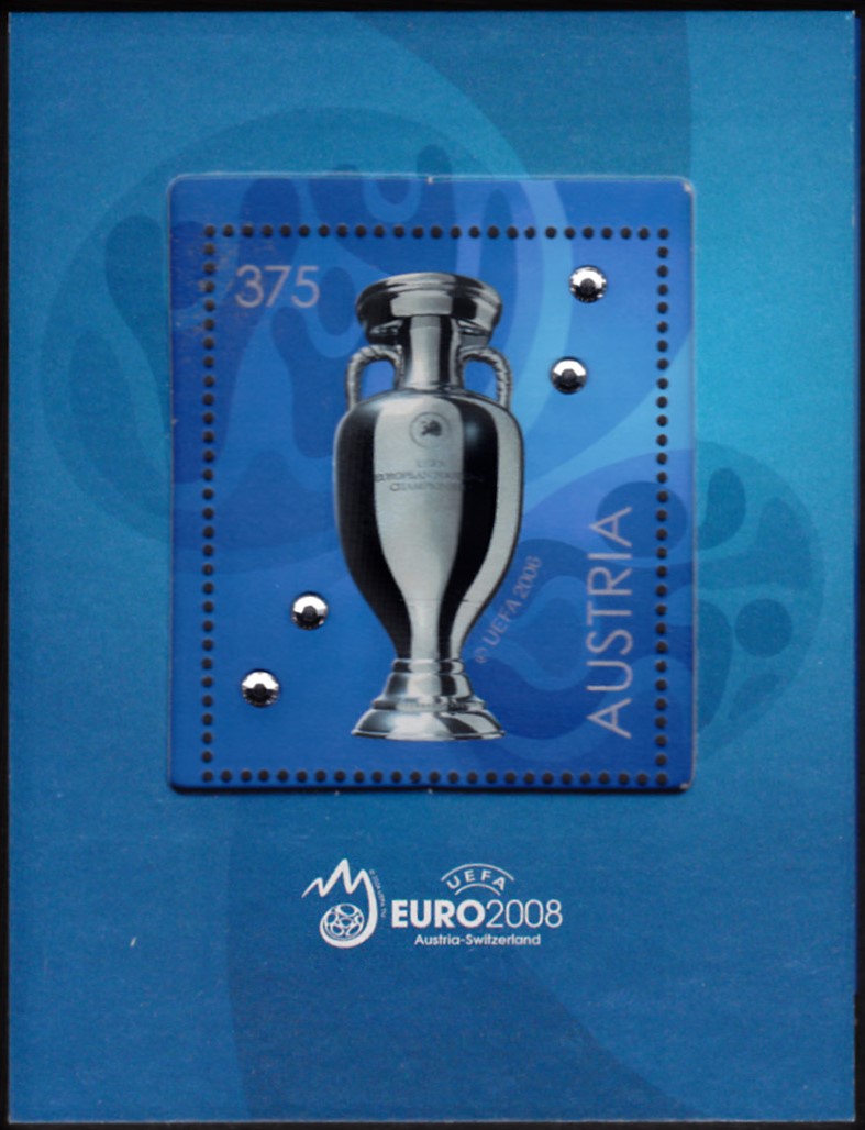 In Österreich ist zur Fußball-Europameisterschaft 2008 in Österreich und der Schweiz auch noch ein weiterer Block (MiNr Block 43 mit Marke MiNr 2751) erschienen. Die Marke bildet den "Henri-Delaunay-Pokal" ab, der als Gewinntrophäe der Fußball-Europameisterschaft seit 1960 verliehen wird. Der Block wurde in einer Geschenkpackung verkauft. Die Blockmarke ist mit 4 Swarovski-Kristallen bestückt.