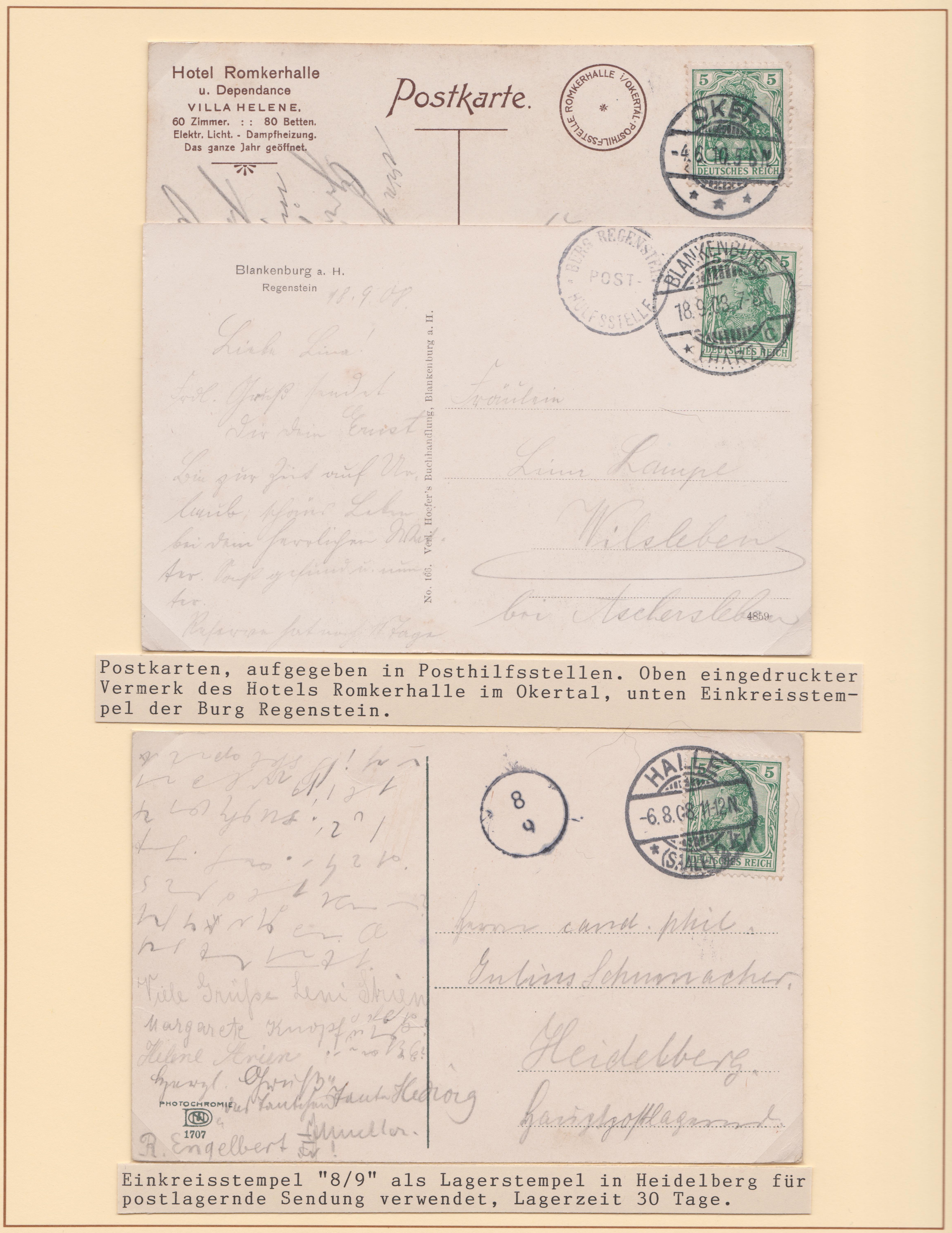 Postkarte mit Einzelfrankatur 5 Pf Germania, aufgegeben bei der POSTHILFSSTELLE im Hotel ROMKERHALLE im Okertal: