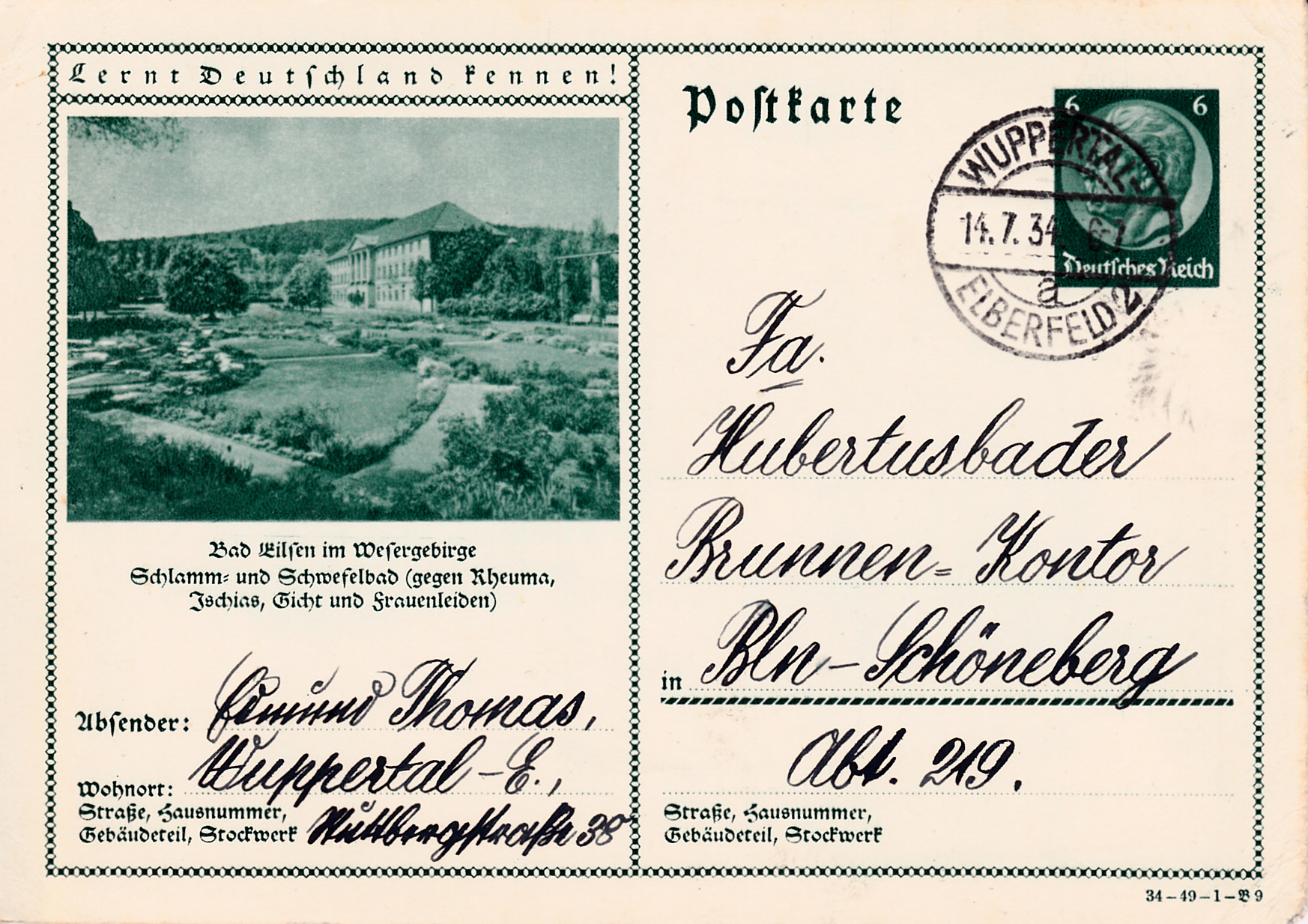 Es folgt eine Bildpostkarte (Serie 49 Bild 9) mit einer Ansicht aus Bad Eilsen.