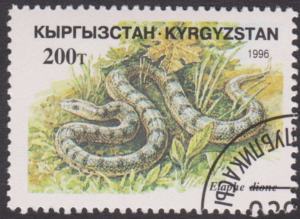 Kirgisien MiNr. 112 erschien am 02.02.1996 und zeigt eine Dione-Natter (Elaphe dione), auch Steppennatter genannt: