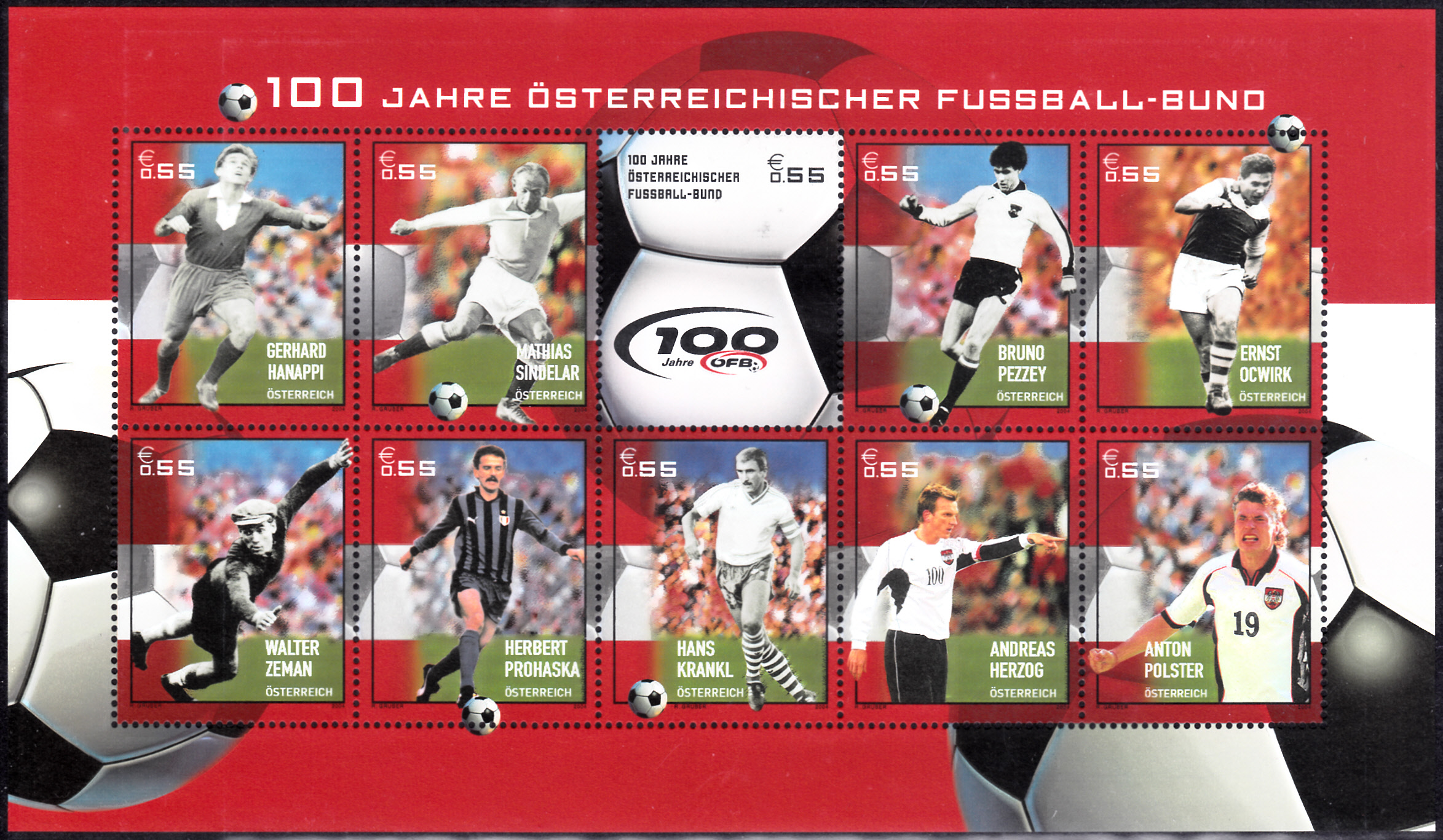 Auf dieser Marke aus Österreich (MiNr 2468) sehen wir Andreas Herzog.