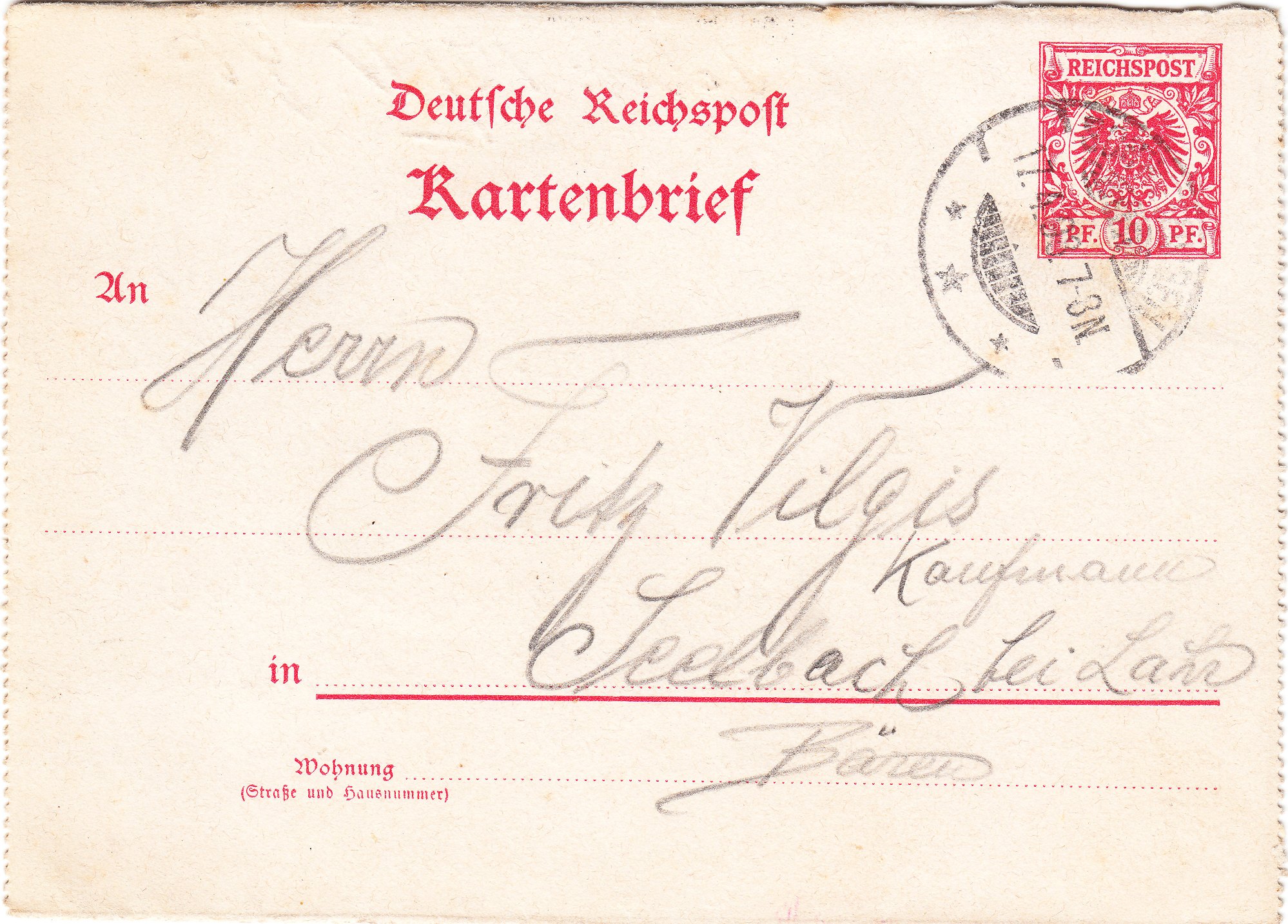 Kartenbrief der Deutschen Reichspost, gebraucht am 17.04.1898: