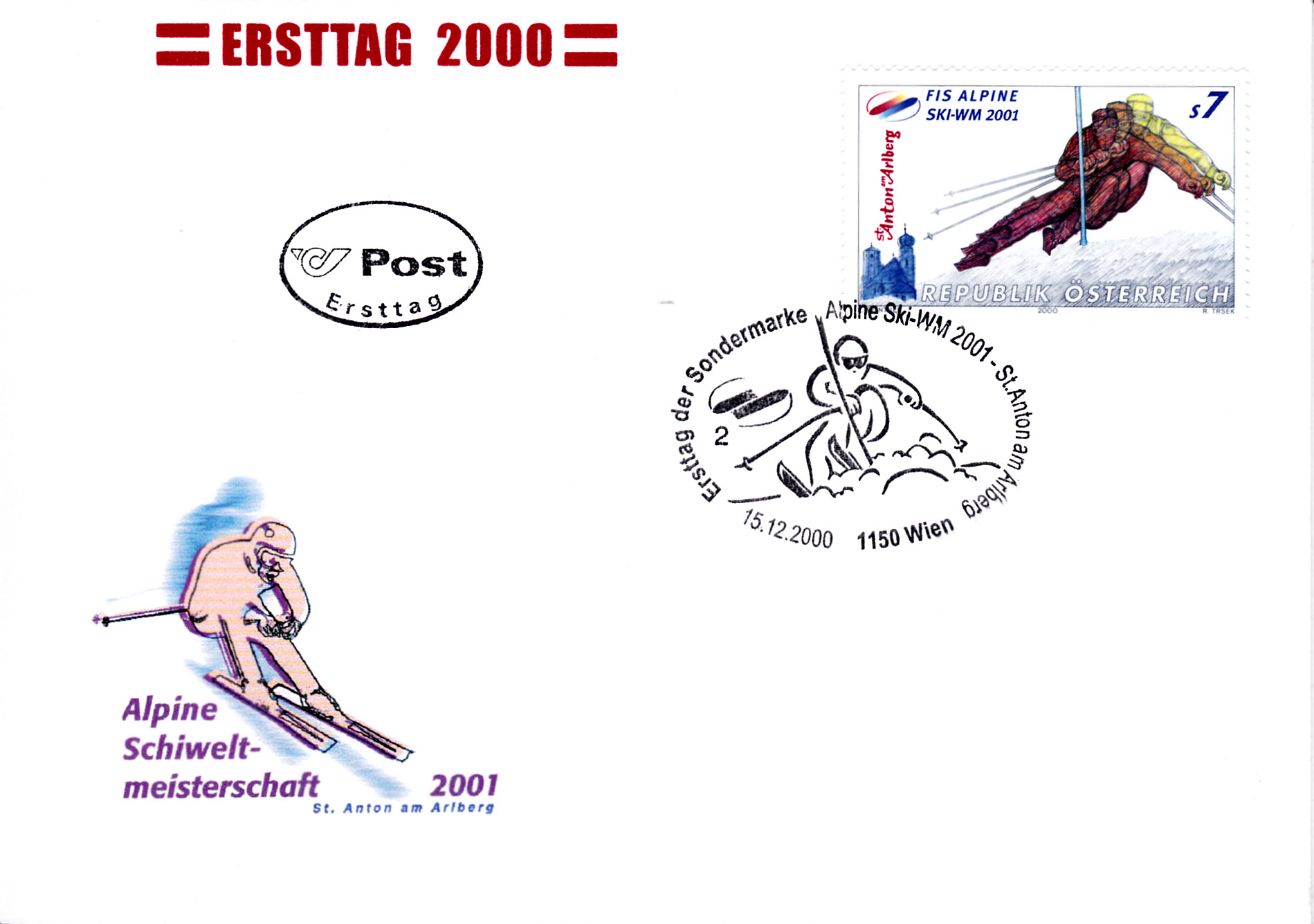 Inn Österreich ist zu der WM auch eine Marke (MiNr 2335) mit einem Alpinen Skiläufer erschienen.