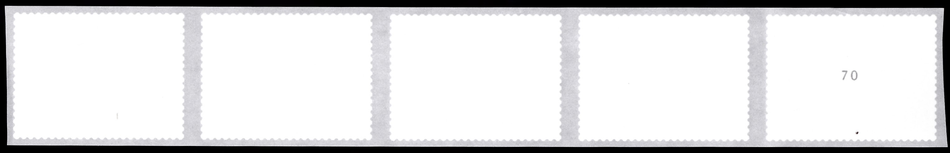 Es folgt ein Fünferstreifen der selbstklebende Marke (MiNr 3669) aus aus der Rolle.