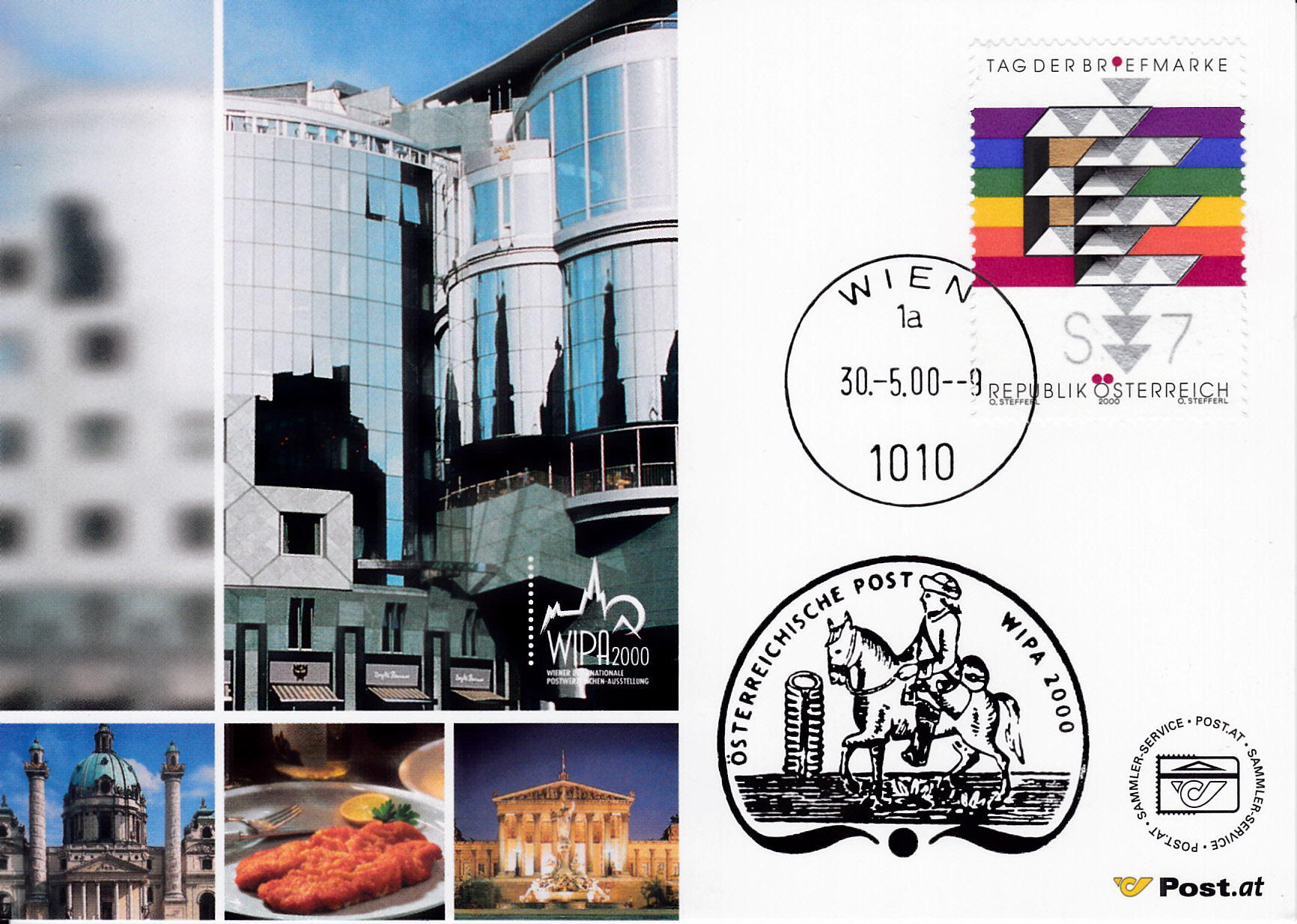 Die Marke wurde auch auf der "Ausstellungskarte" des Sammler-Service der Österreichischen Post zur WIPA 2000 verklebt.