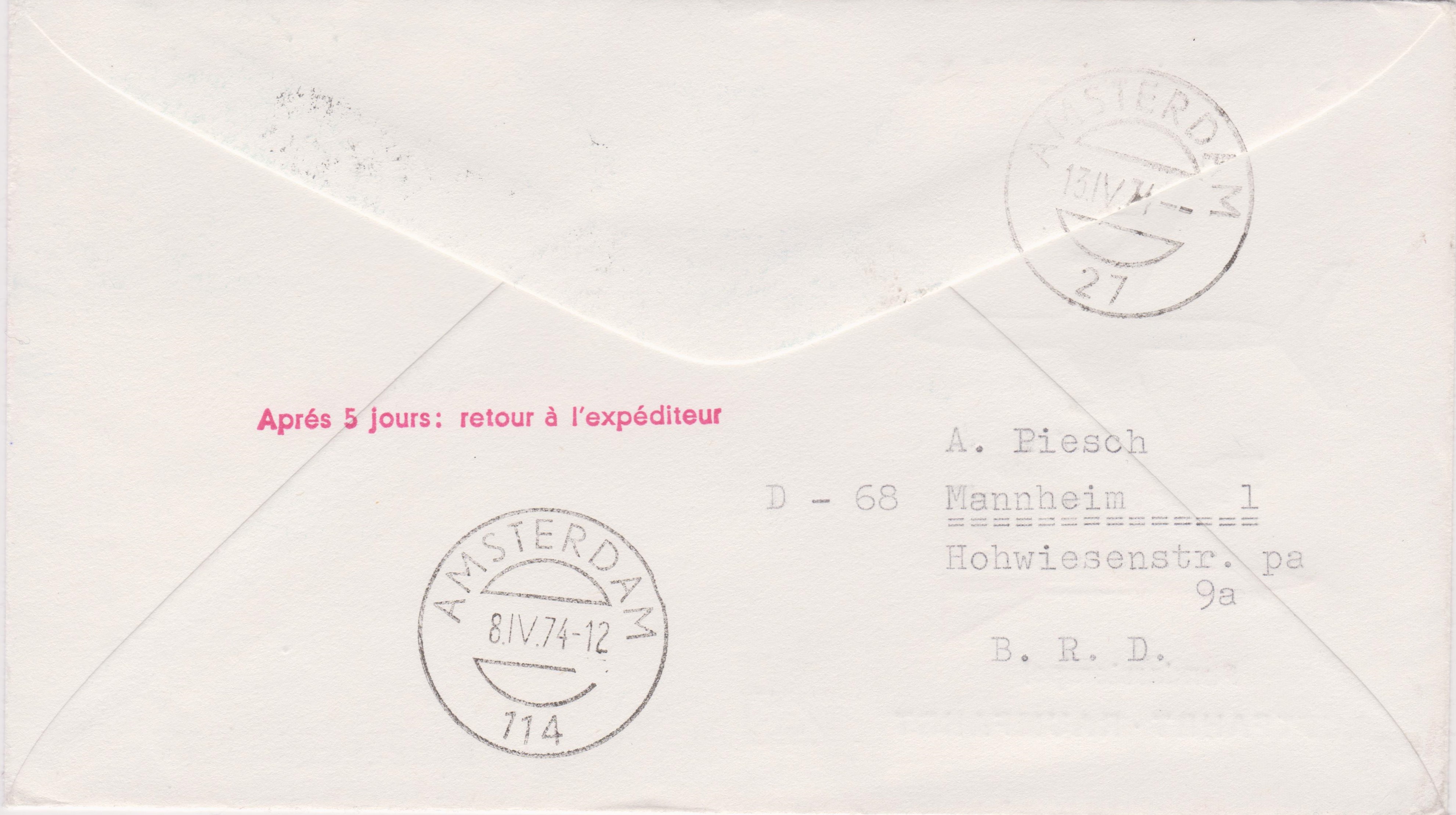 Dann wurde der Beleg am 05.05.1984 mit dem Ballon "SUMSI OE-AZB" befördert von 6170 ZIRL nach 6010 INNSBRUCK, wo er um 16 Uhr der österreichischen Post übergeben wurde zur Weiterbeförderung an seinen Bestimmungsort Salzburg.