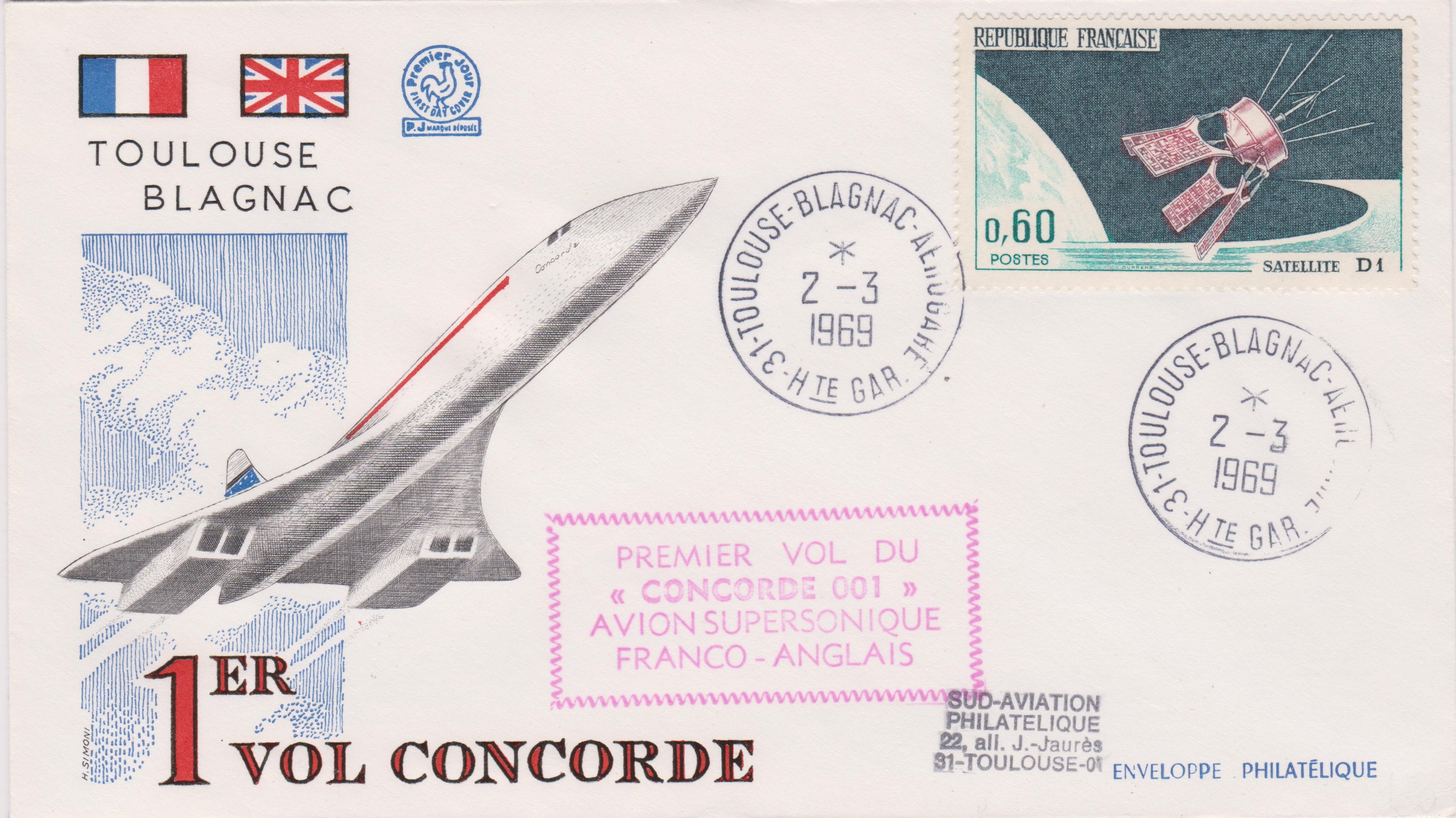 Dieser Beleg dokumentiert den Erstflug der französischen "CONCORDE 001" am 02.03.1969 in TOULOUSE: