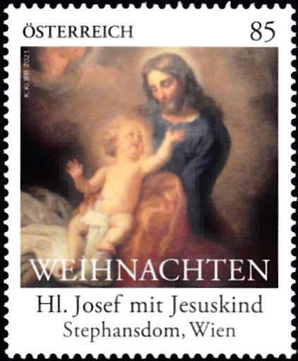 Auf einer Weihnachtsmarke 2021 aus Österreich (MiNr 3623) wird der "Hl. Josef mit Jesuskind" nach einem Altargemälde im Wiener Stephansdom von Antoni Schoojans (1655–1726; flämischer Maler) abgebildet.