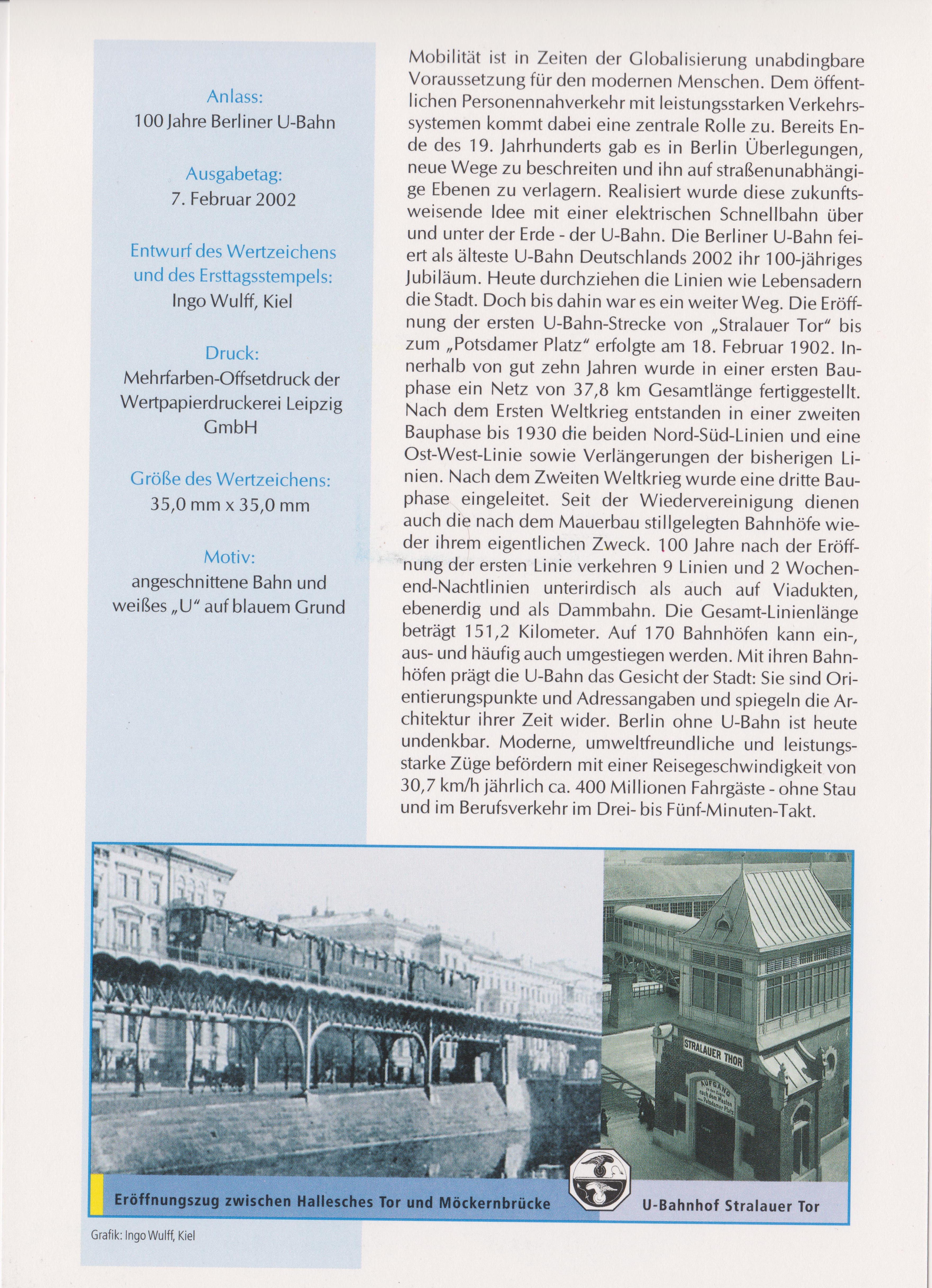 Die Eröffnung der ersten U-Bahn-Strecke in Berlin erfolgte am 18. Februar 1902. Sie führte vom "Stralauer Tor" im Osten der Stadt bis zum "Potsdamer Platz".