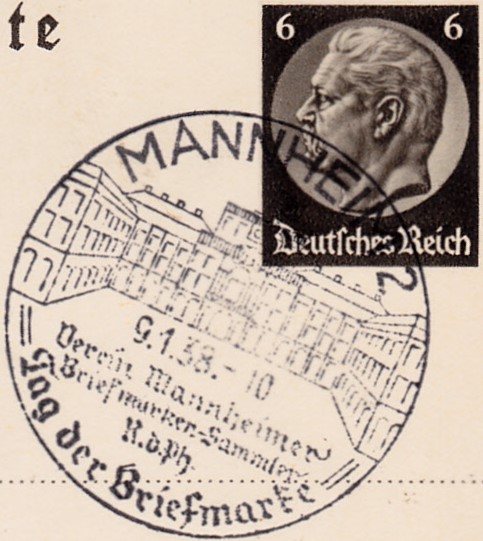 Sonderstempel zu einer Briefmarkenschau vom 9.1.1938 (Tag der Briefmarke 1938) aus Belgard (Persante) 1 auf einer Bildpostkarte. Belgard heißt heute Białogard und ist eine Kreisstadt in der polnischen Woiwodschaft Westpommern.