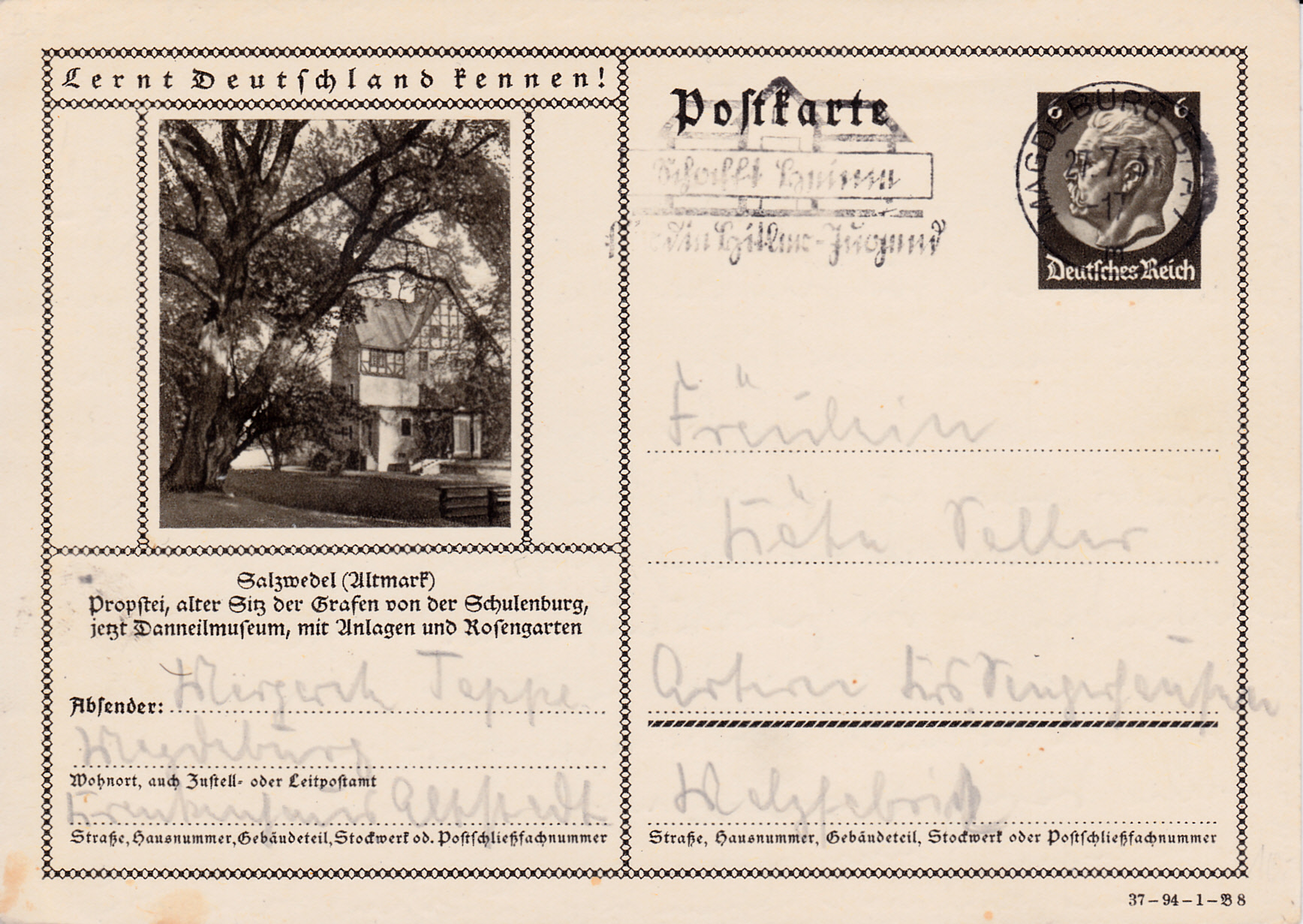 Salzwedel (Altmark) zeigt auf dieser Karte (Serie 94 Bild 8) ein Foto mit der Probstei, dessen Hauptgebäude von 1577 bis 1578 für Albrecht IV. von der Schulenburg erbaut wurde. Seit 1932 wird das Bauwerk als Sitz des Johann-Friedrich-Danneil-Museums genutzt.