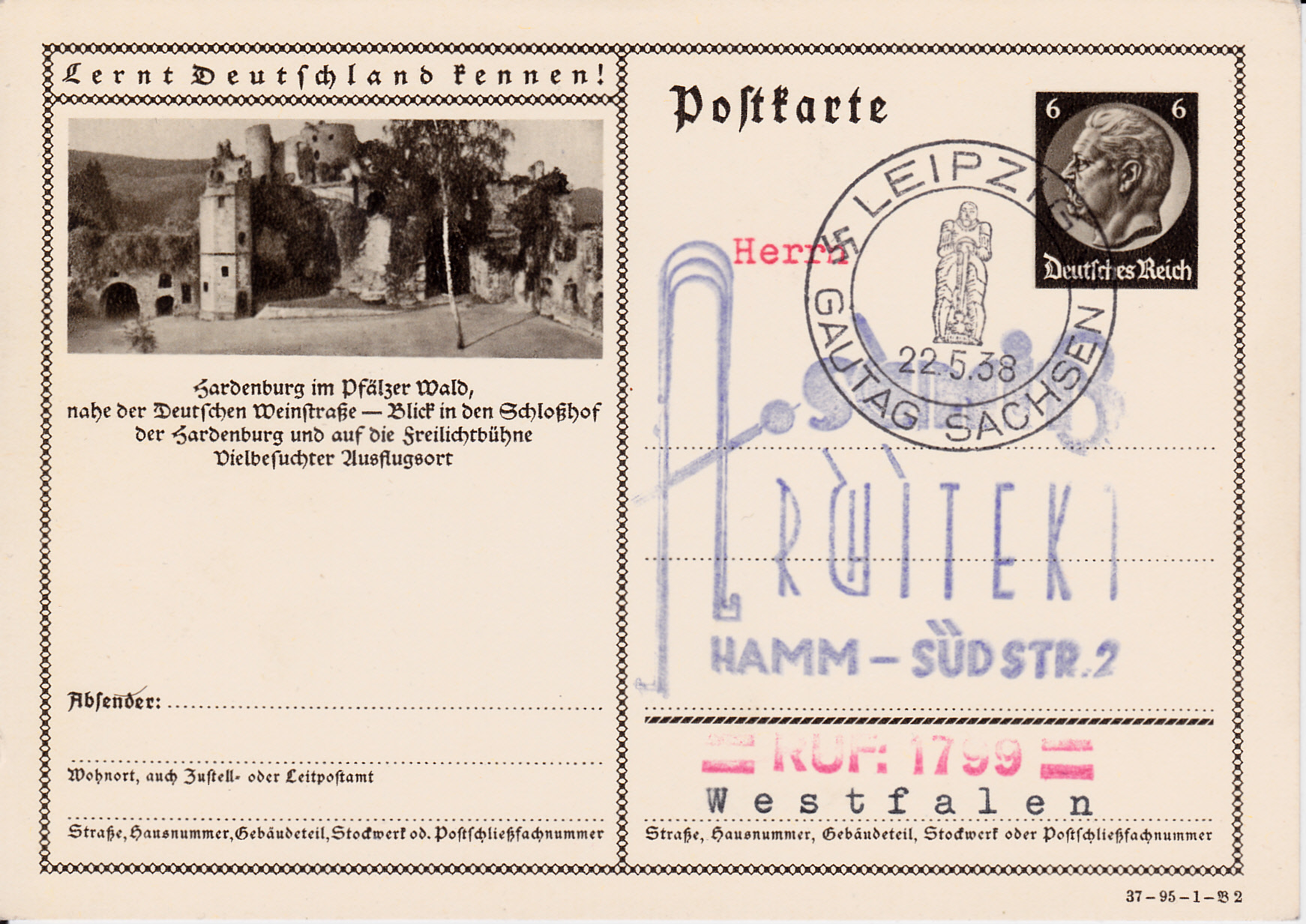 Auf dem Bild dieser Karte (Serie 95 Bild 2) wird die Hardenburg gezeigt. Sie ist die Ruine einer Höhenburg in der Haardt, dem Ostrand des Pfälzerwalds. Sie liegt in knapp 200 m Höhe über dem gleichnamigen westlichen Ortsteil Bad Dürkheim-Hardenburg auf einer 200 m langen Bergnase.
