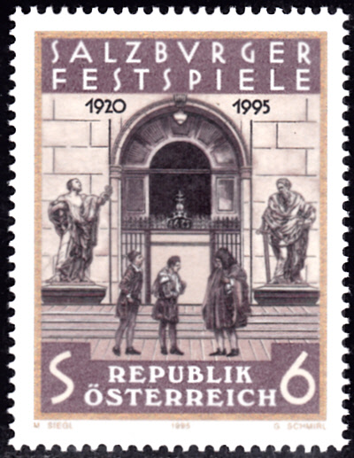 Zum Jubiläum "75 Jahre Salzburger Festspiele" ist bei der Österreichischen Post ebenfalls ein Marke (MiNr 2165) erschienen. Sie zeigt eine Szene aus dem Schauspiel "Jedermann" von Hugo von Hofmannsthal.
