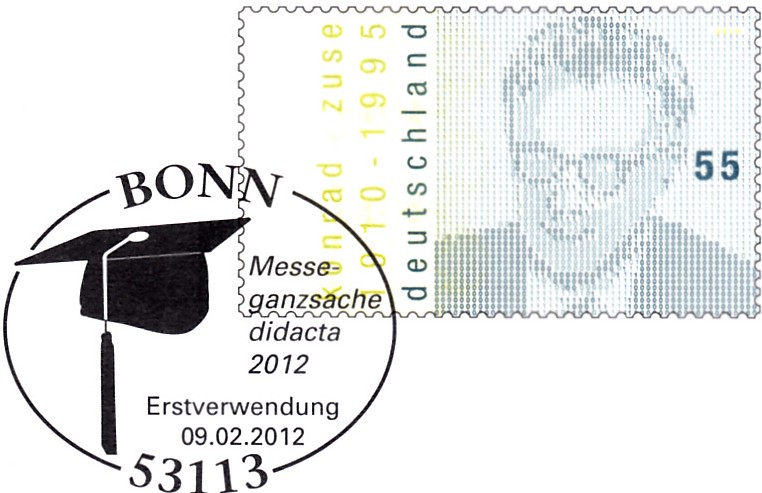 Zur "didacta 2012" erschien eine Ganzsache (MiNr USo262) mit dem Wertstempel 100. Geburtstag von Konrad Zuse.