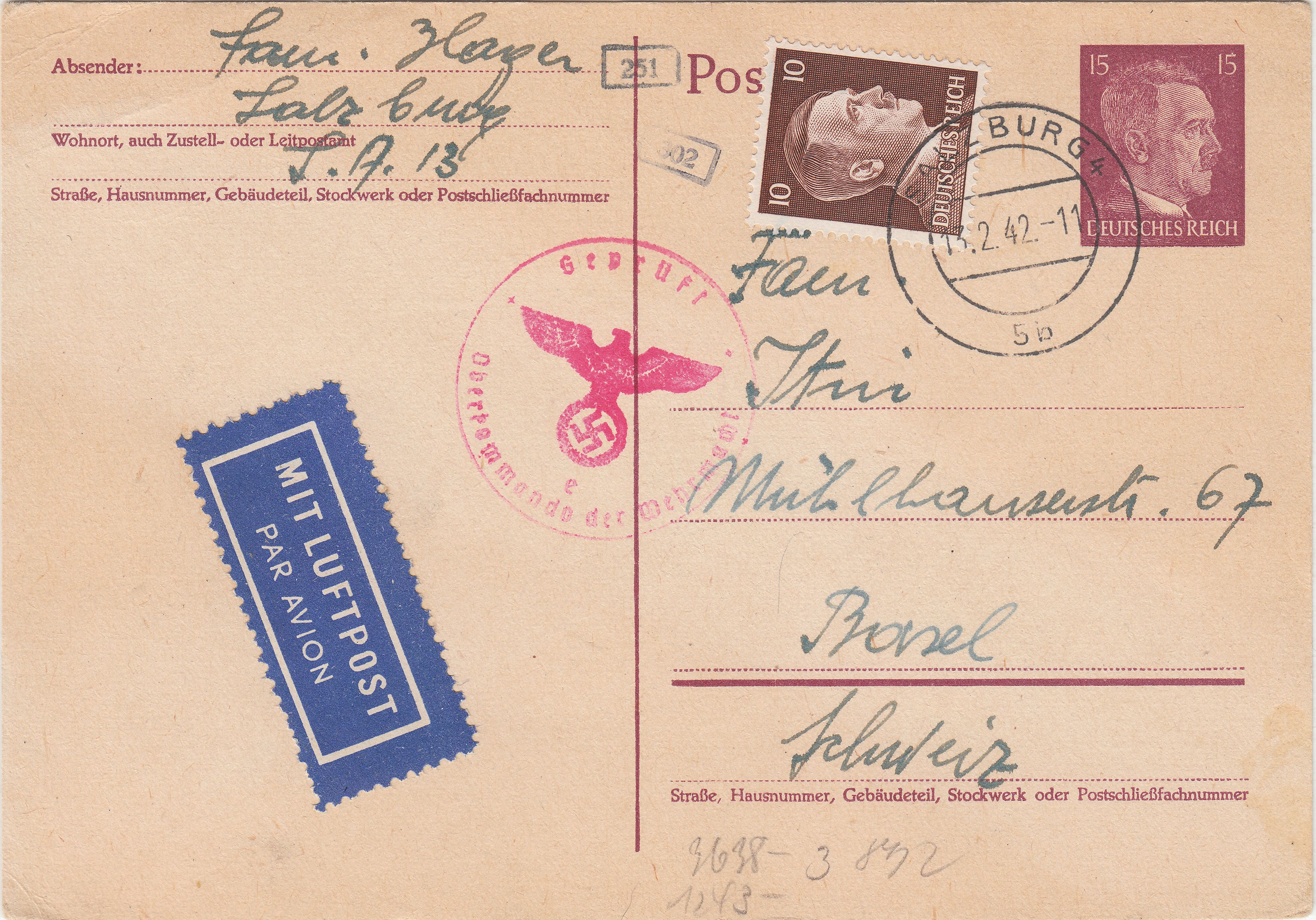 Der Beleg wurde in der ABP Frankfurt offiziell nicht zensuriert, sondern er erhielt lediglich einen "Durchlaufstempel" "Ae" in Rot.