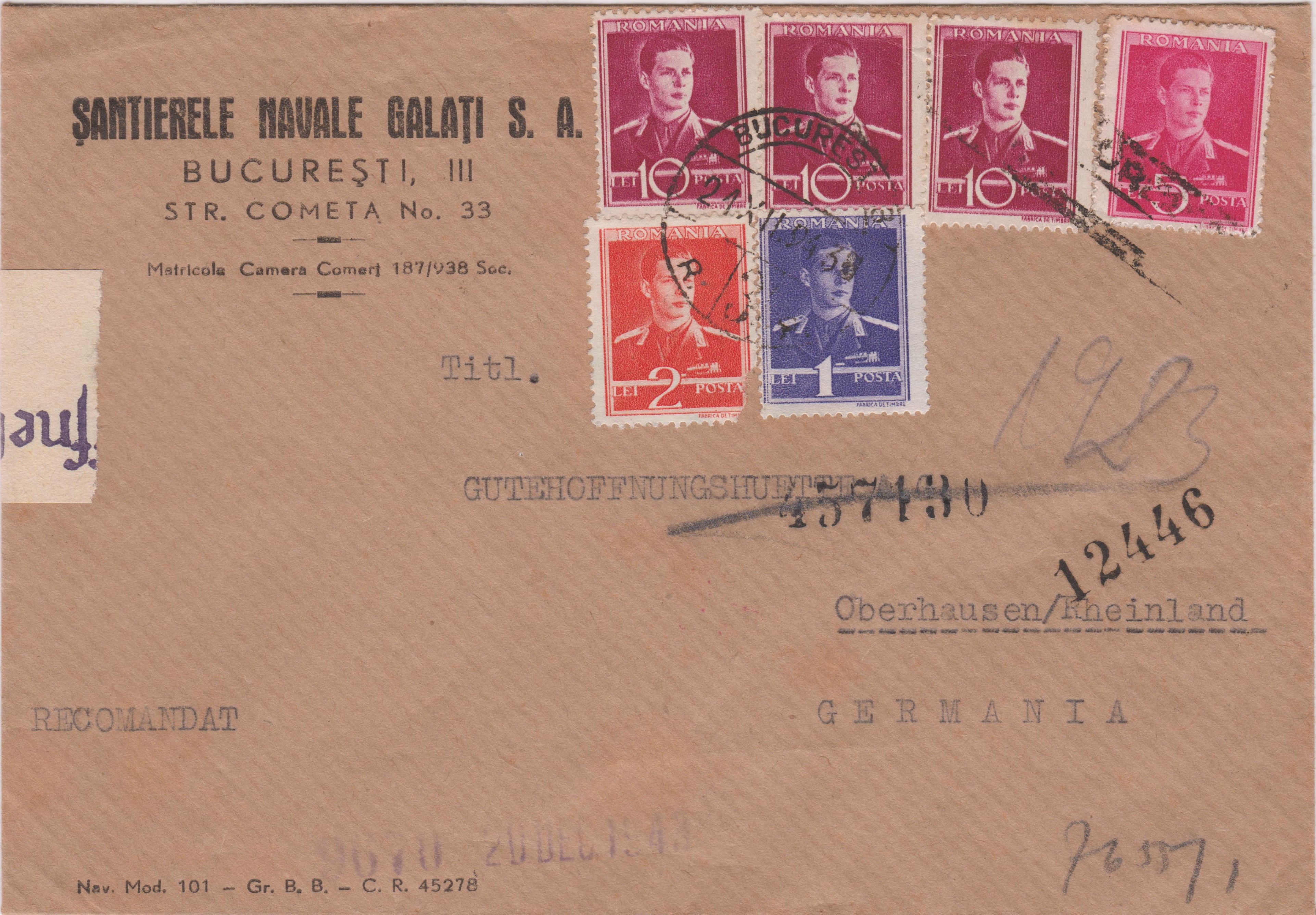 Dieser nach Oberhausen adressierte Brief wurde am 21.12.1943 in Bukarest in Rumänien aufgegeben: