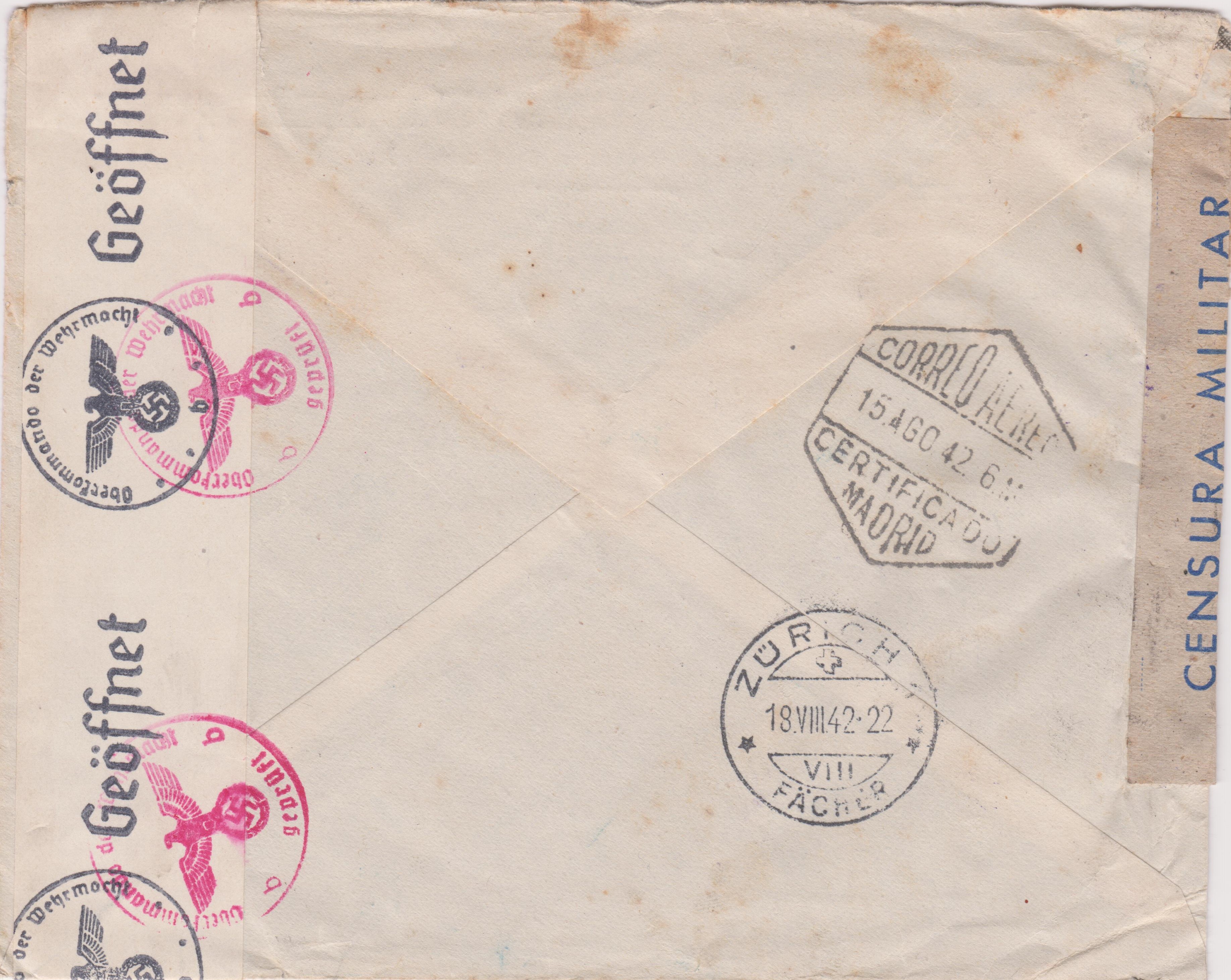 Dieser nach Zürich adressierte Brief wurde 1942 in "SANTA CRUZ DE TENERIFE" aufgegeben: