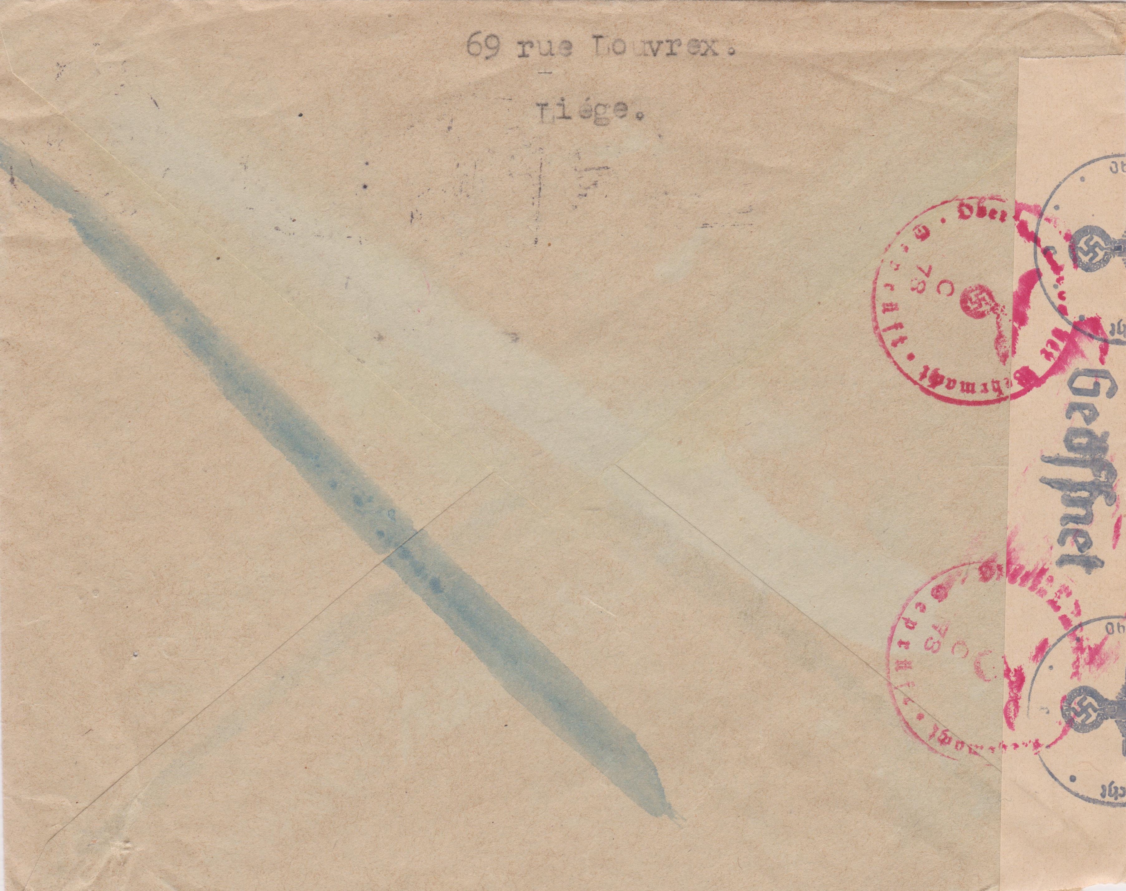 Der Brief wurde der für Post aus Belgien zuständigen ABP Köln zugeleitet, wo er rückseitig geöffnet und nach erfolgter Prüfung mit einem Verschlußzettel "Geprüft", Landsmann CV1.1, wieder verschlossen wurde.