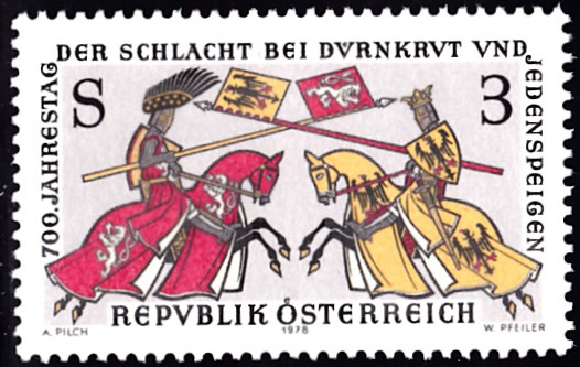 In Österreich ist zum 700. Jahrestag der Schlacht bei Dürnkrut und Jedenspeigen eine Marke (MiNr 1580) mit König Ottokar von Böhmen und König Rudolf (von Habsburg) zu Pferde erschienen.
