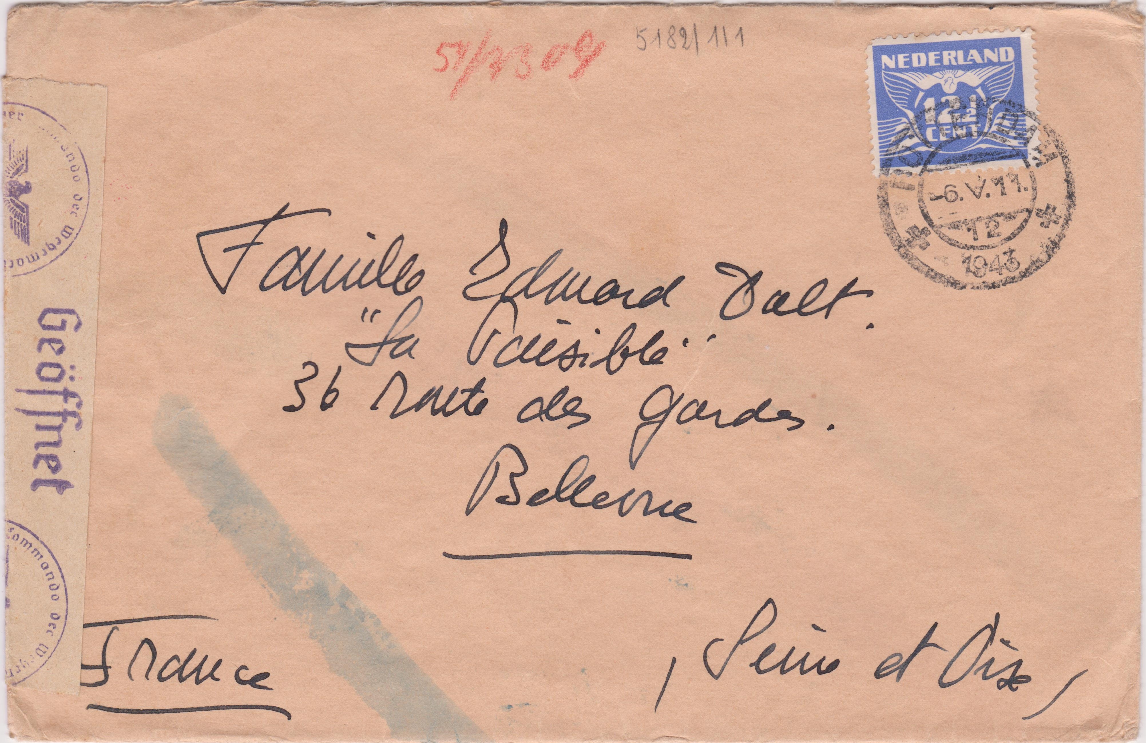 Der Brief wurde der für Post in die Niederlande sowie nach Belgien zuständigen ABP Köln zugeleitet, wo er linksseitig geöffnet und nach erfolgter Prüfung mit einem Verschlußstreifen wieder verschlossen wurde, was ein rückseitig abgeschlagener Maschinenstempel in Rot dokumentiert.
