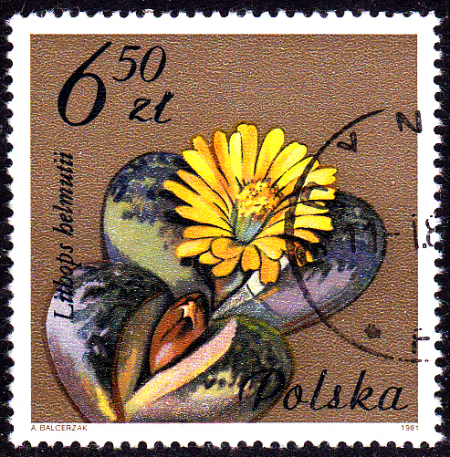 Auf dieser Marke (MiNr 745) einer Serie "Sukkulenten" aus Südafrika ist eine Lithops dorotheae abgebildet.