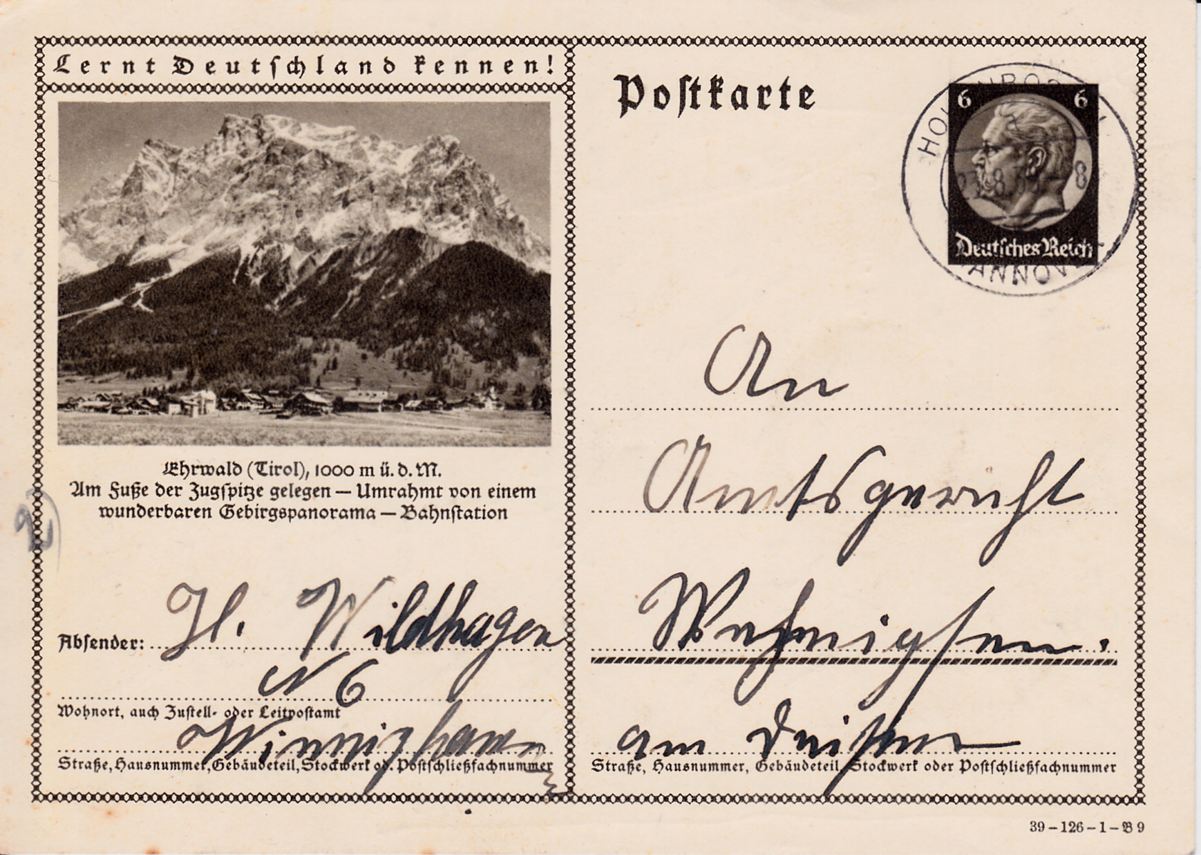 Ich beginne mit der Karte mit dem Druckvermerk 39-126-1-B1 (Ausgabejahr 1939-Serie 126-Druckplatte 1-Bild 1; bei weiteren Karten nenne ich jeweils die Serie und die Bildnummer, die Druckplattennummer nur, wenn es verschiedene Druckplattennummern bei der jeweiligen Serie gibt).
