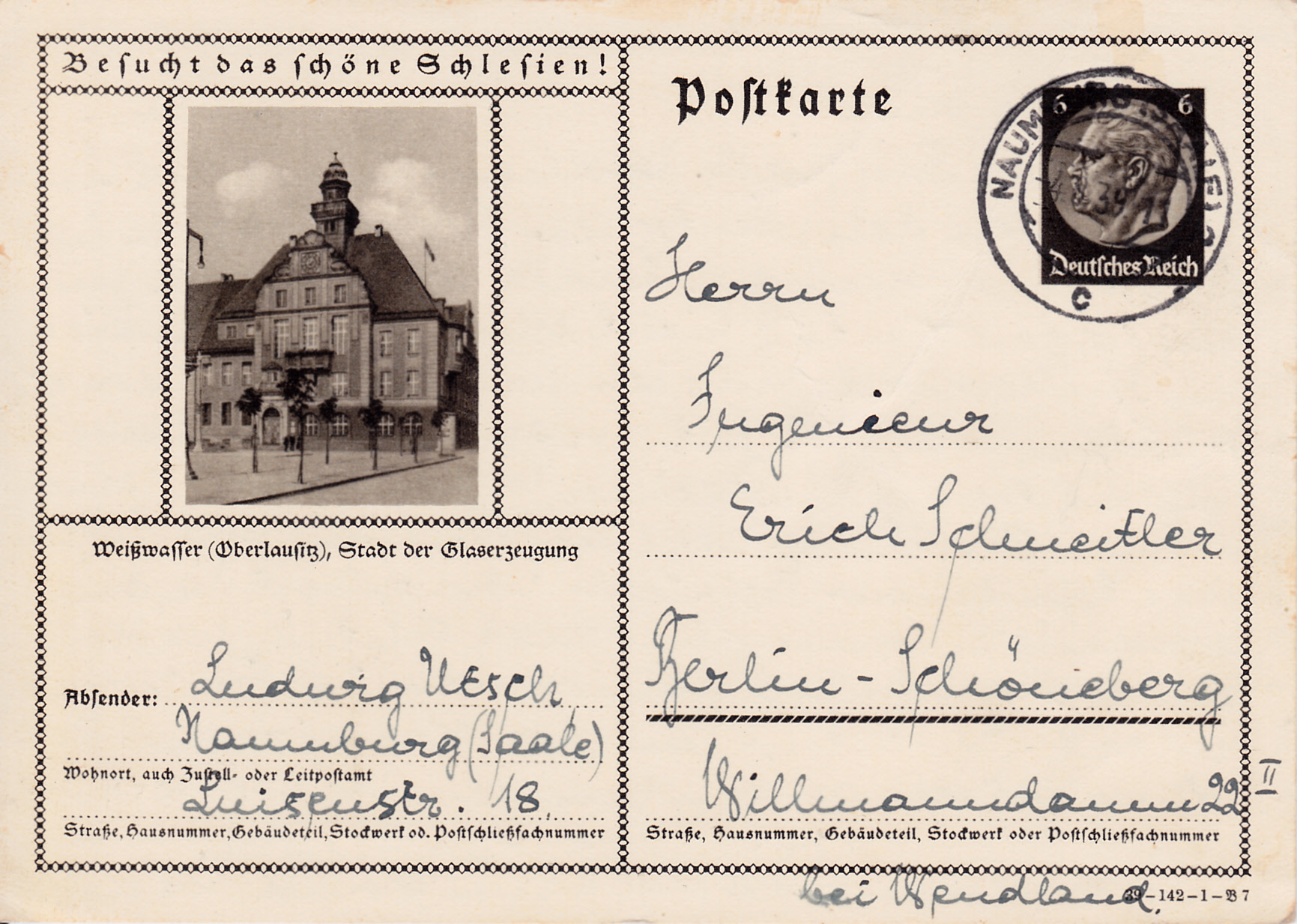 Beuthen (Oberschlesien) zeigt auf dieser Karte (Serie 142 Bild 8) einen Ausblick aus einem Fenster des Oberschlesischen Landesmuseums. Beuthen heißt heute Bytom und ist eine kreisfreie Großstadt in der polnischen Woiwodschaft Schlesien.