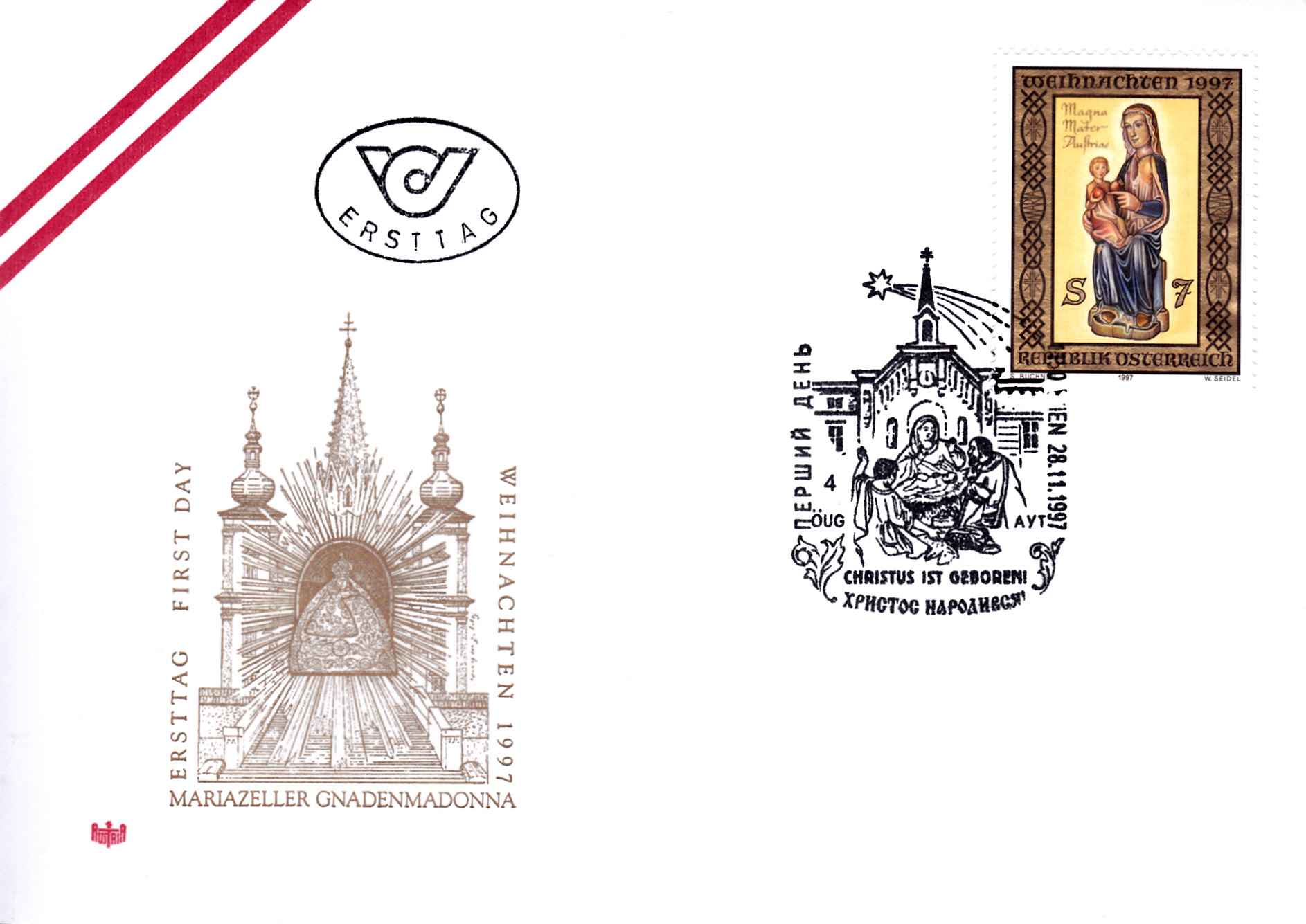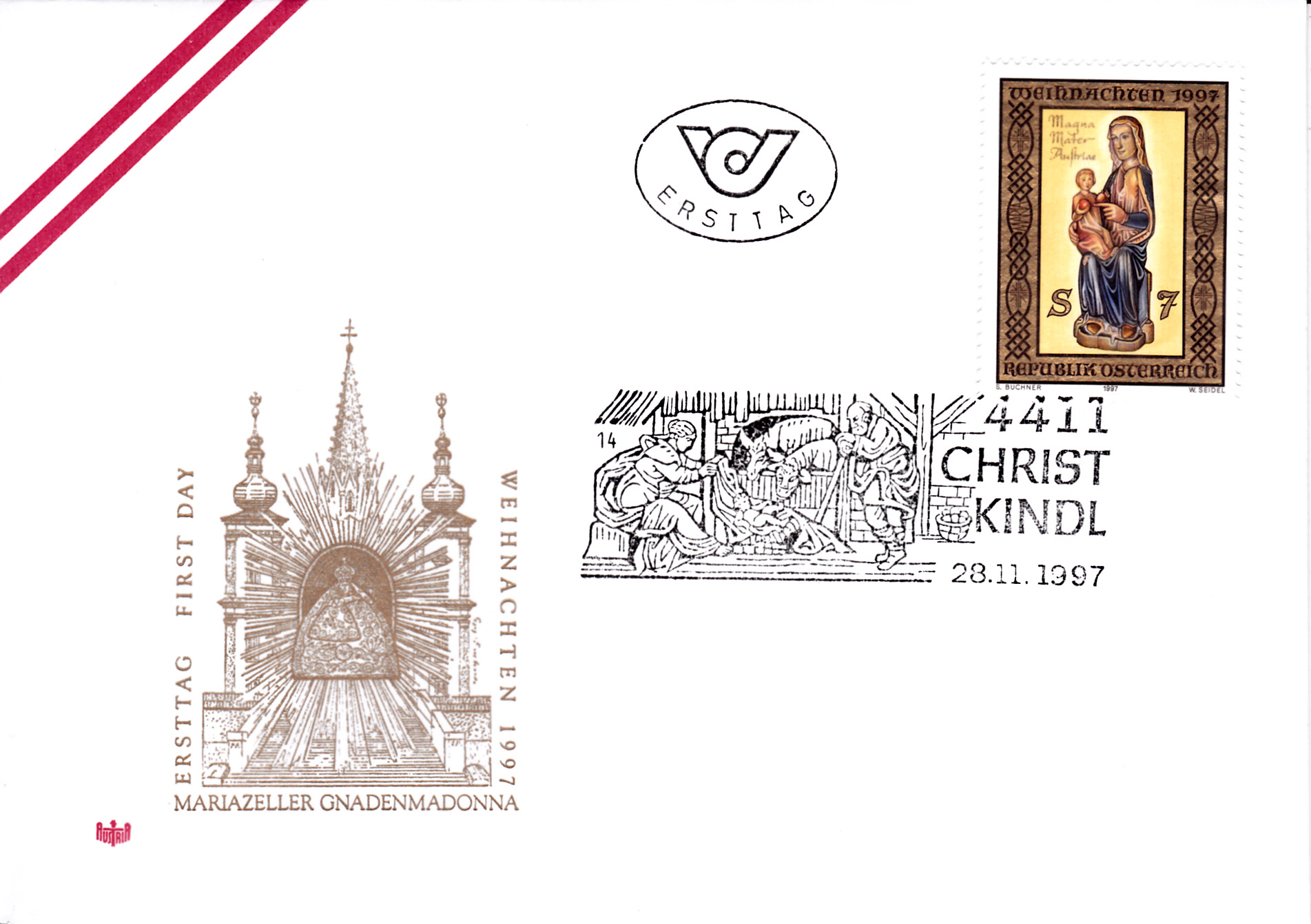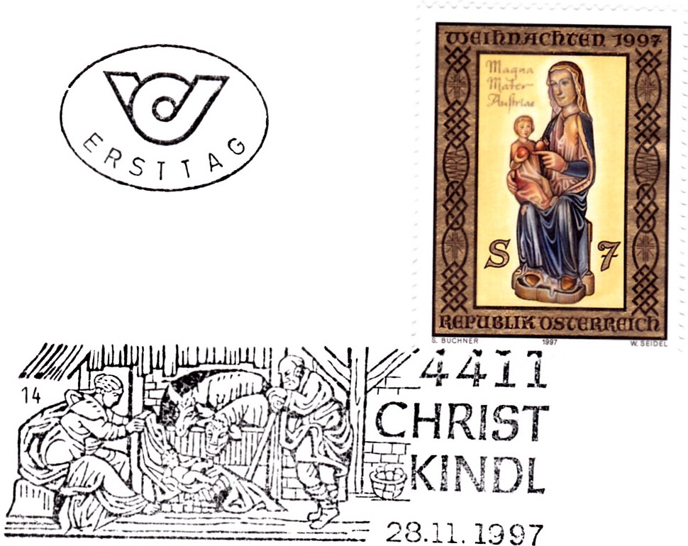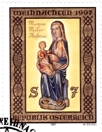 Auf der Weihnachtsmarke 1997 aus Österreich (MiNr 2239) ist die Gnadenmadonna von Mariazell zu sehen.